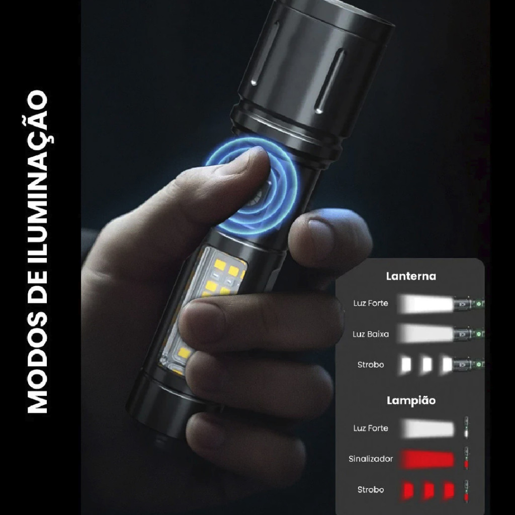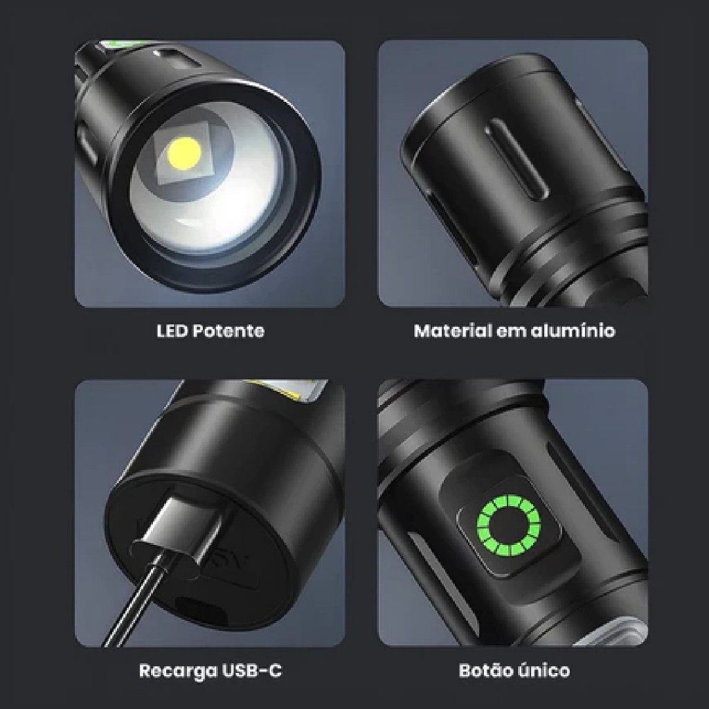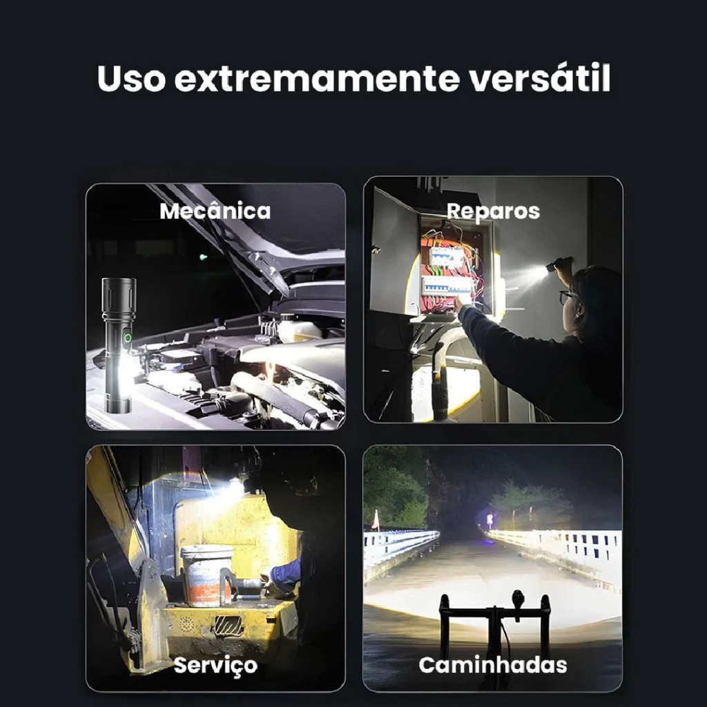 Super Lanterna Led PRO Tática Zoom Com Carregador USB Recarregável Bateria com Super Foco