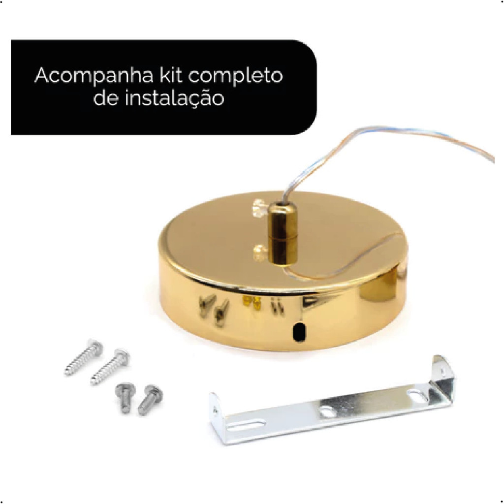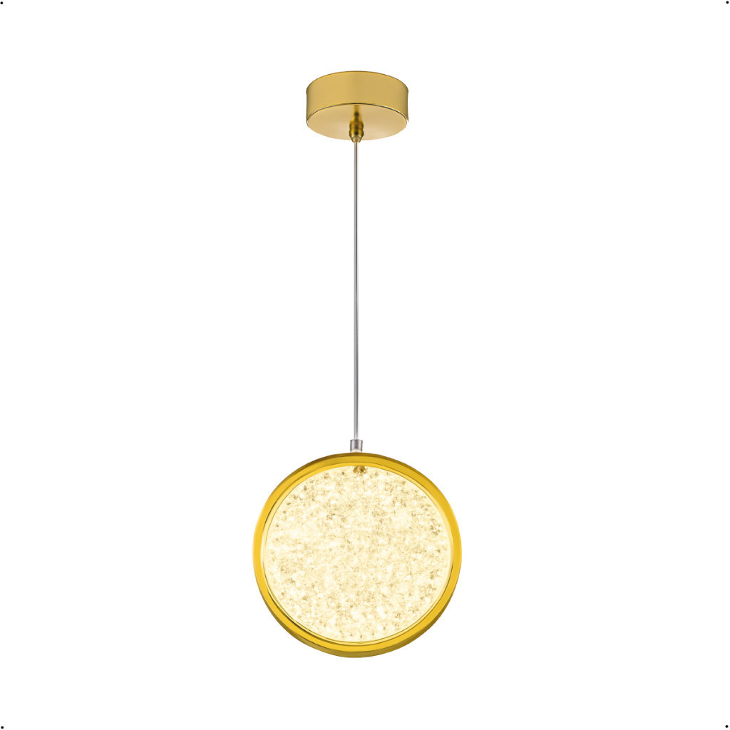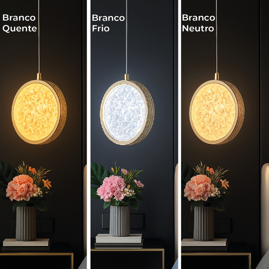 Pendente Luminária Redonda Dourada Cristal de Luxo LED 3 Tons de Luz 110V-220V Bivolt