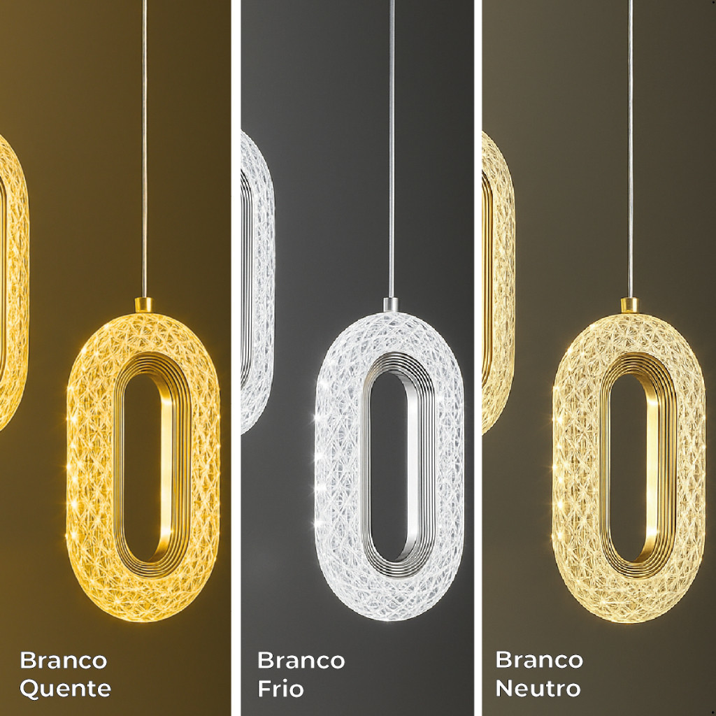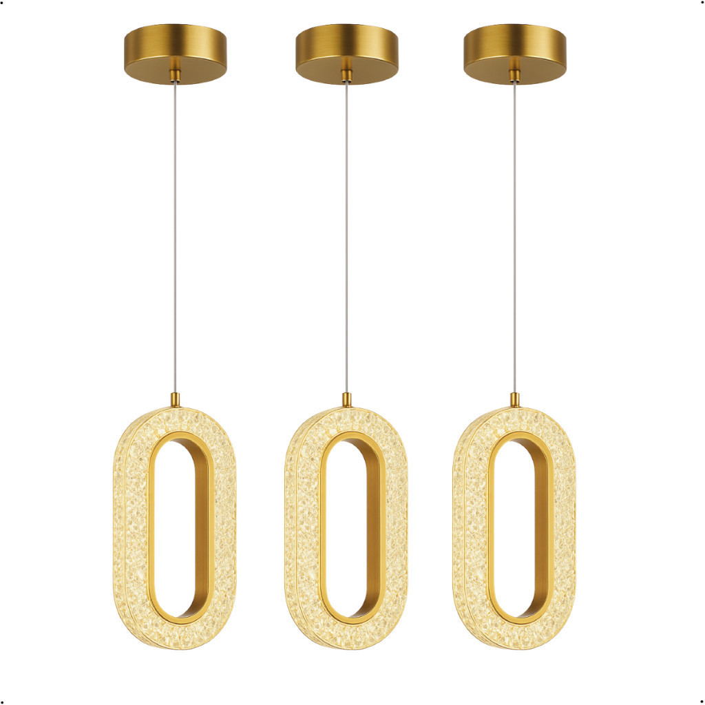 Luminária Pendente Cristal Oval Eclipse LED Moderno Dourado 7W Bivolt com 3 Tons de Luz