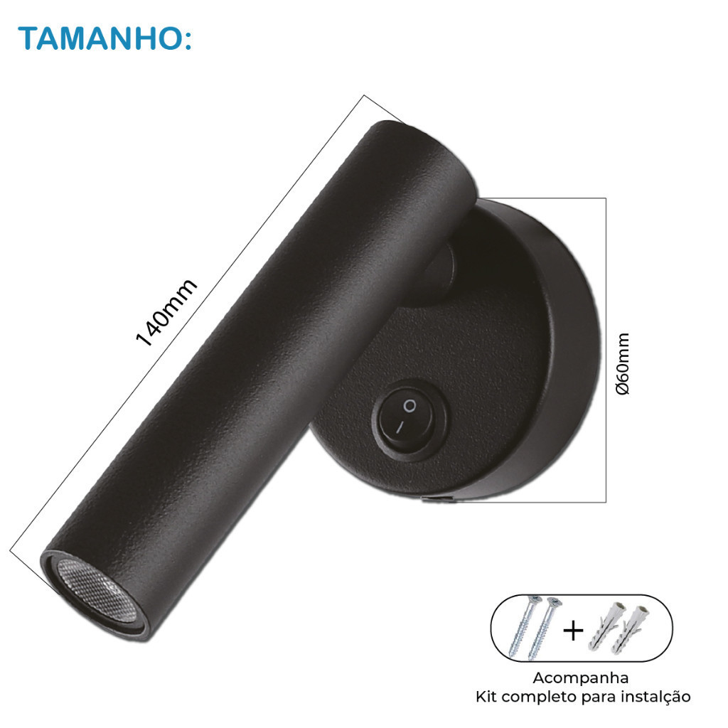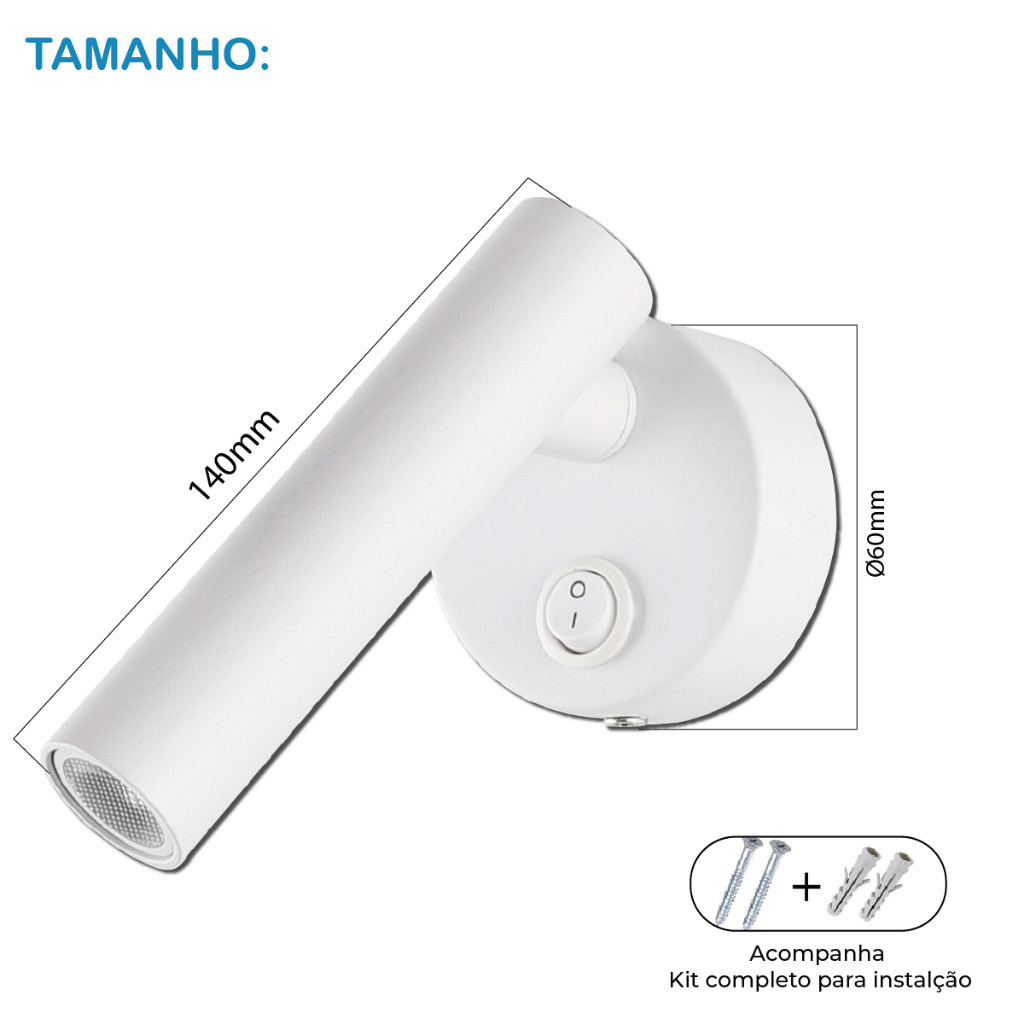 Luminária Arandela para Cabeceira Led 2W Recarregável Luz Quente Ajustável Bivolt