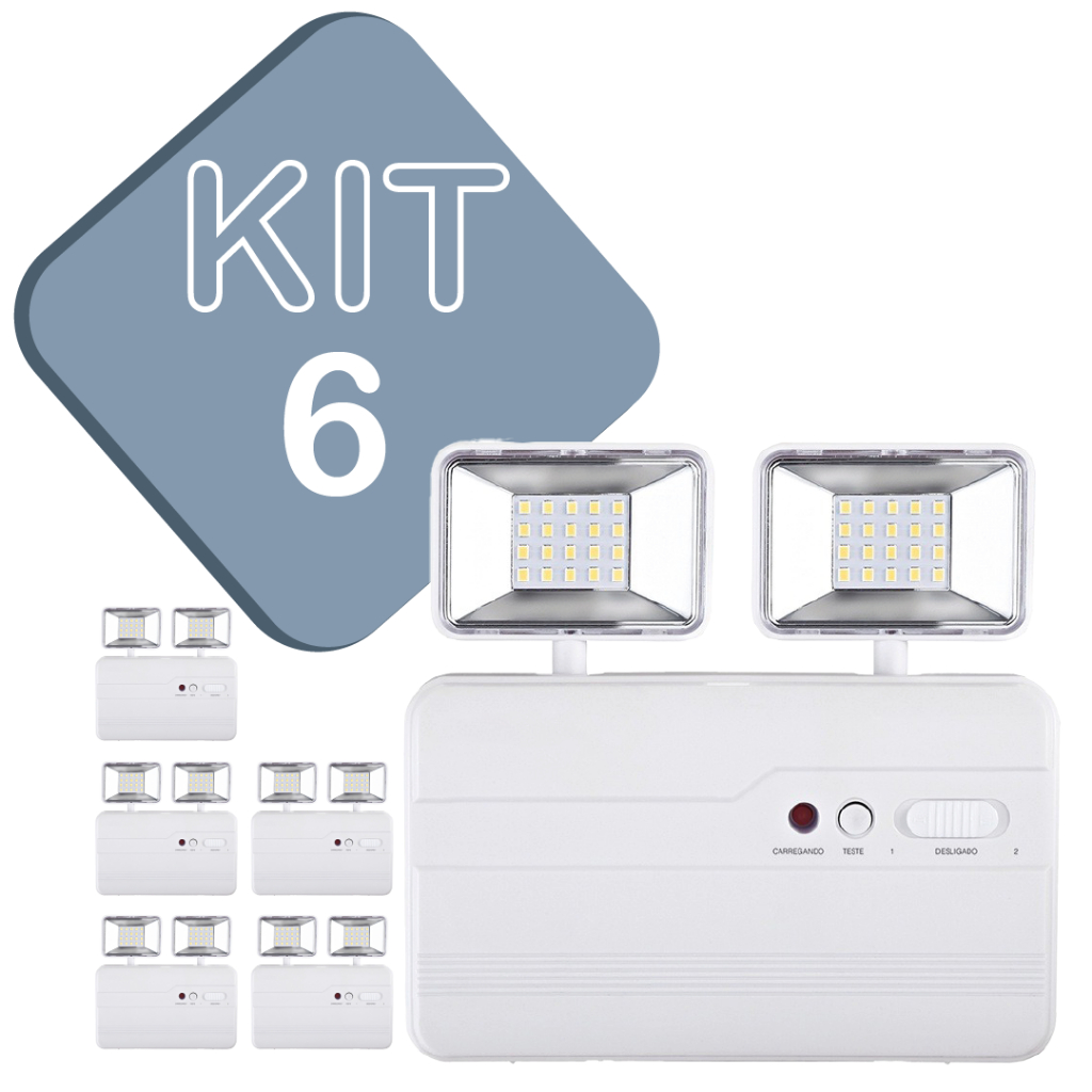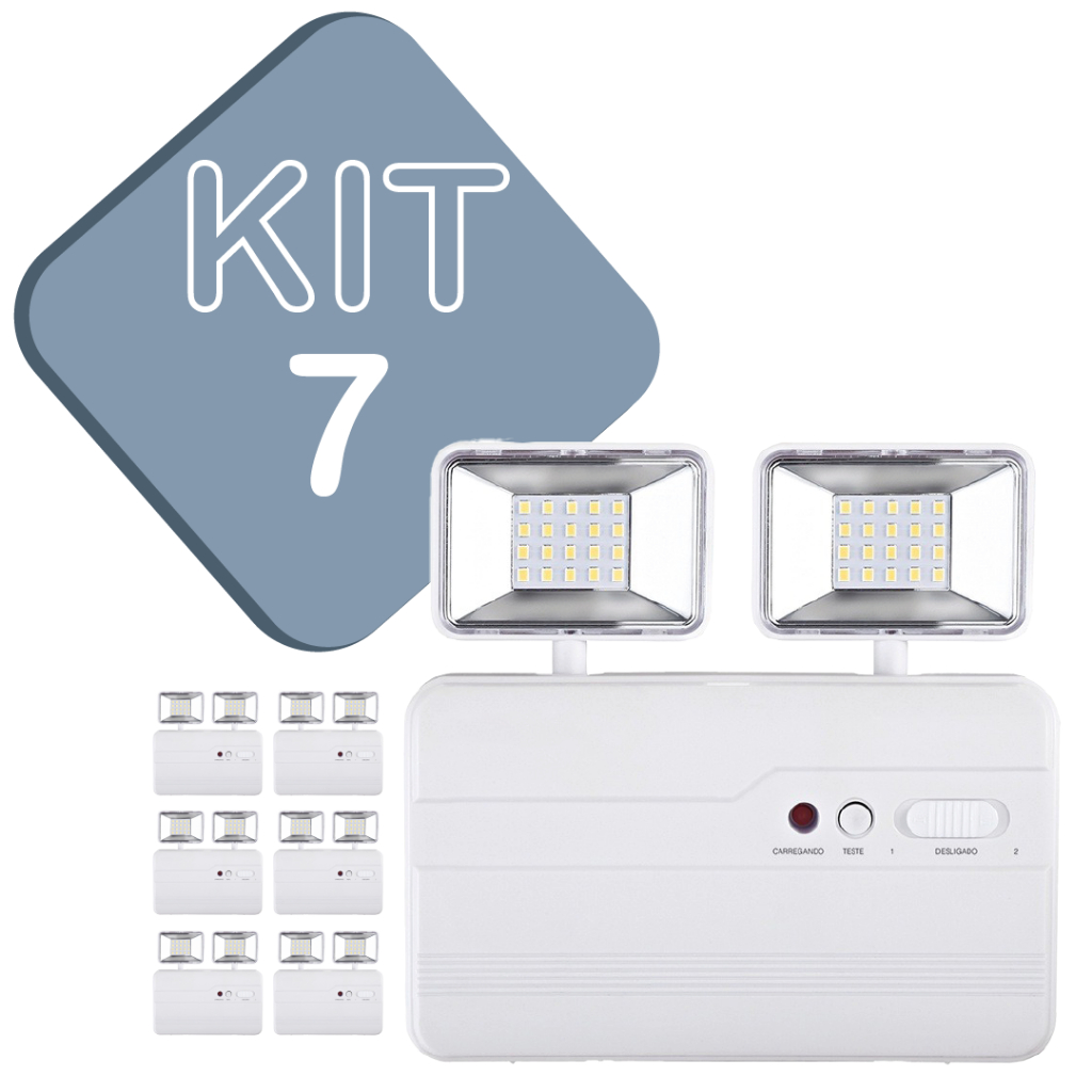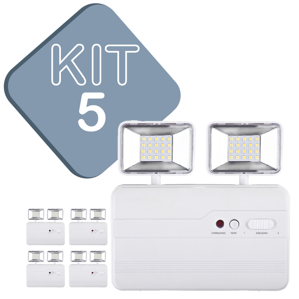 Kit5/6/7 Luminária de Emergência LED PRO 20W com 2 Farol 40 LEDS Luz Branco Frio