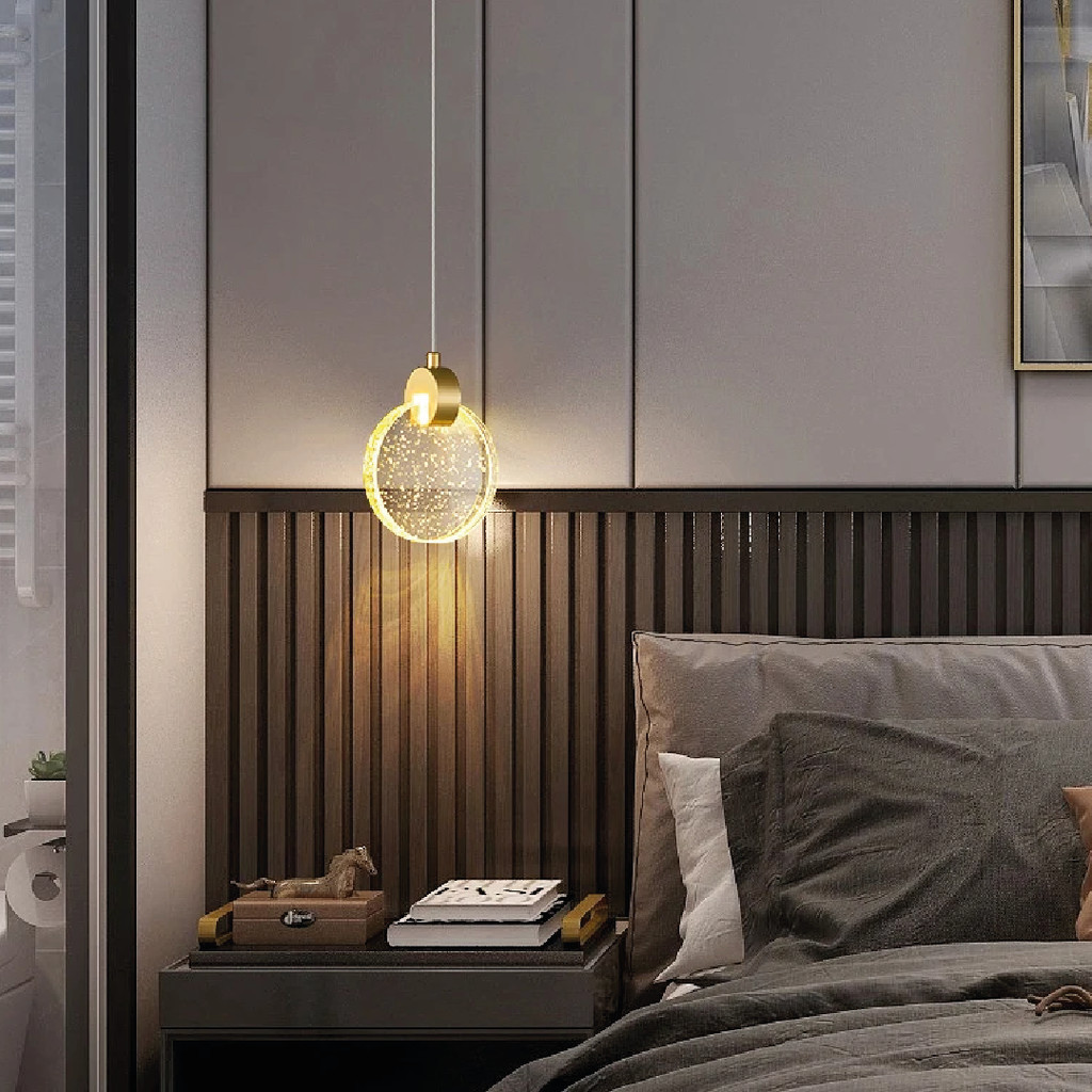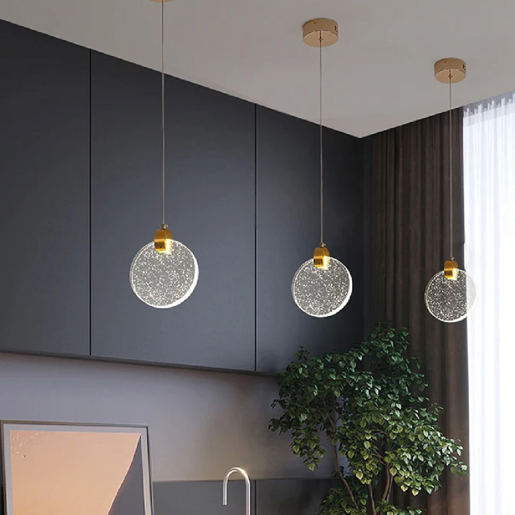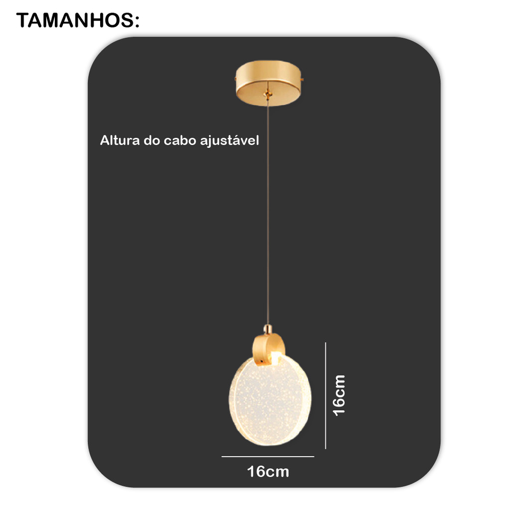 Pendente Lustre de Cristal Bolha Lua Cheia Dourado 3 cores de luz 110V-220V Bivolt