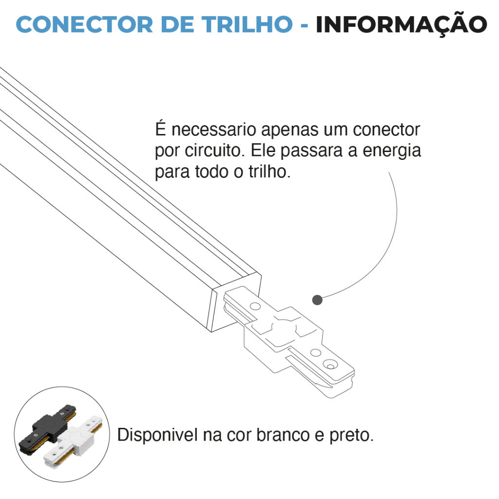 Conector para trilho de Spot Trilho nas cores Branco e Preto