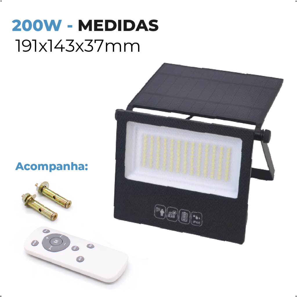 Refletor Solar Led 200w Placa Solar Prova Dágua Ajustável Dobrável