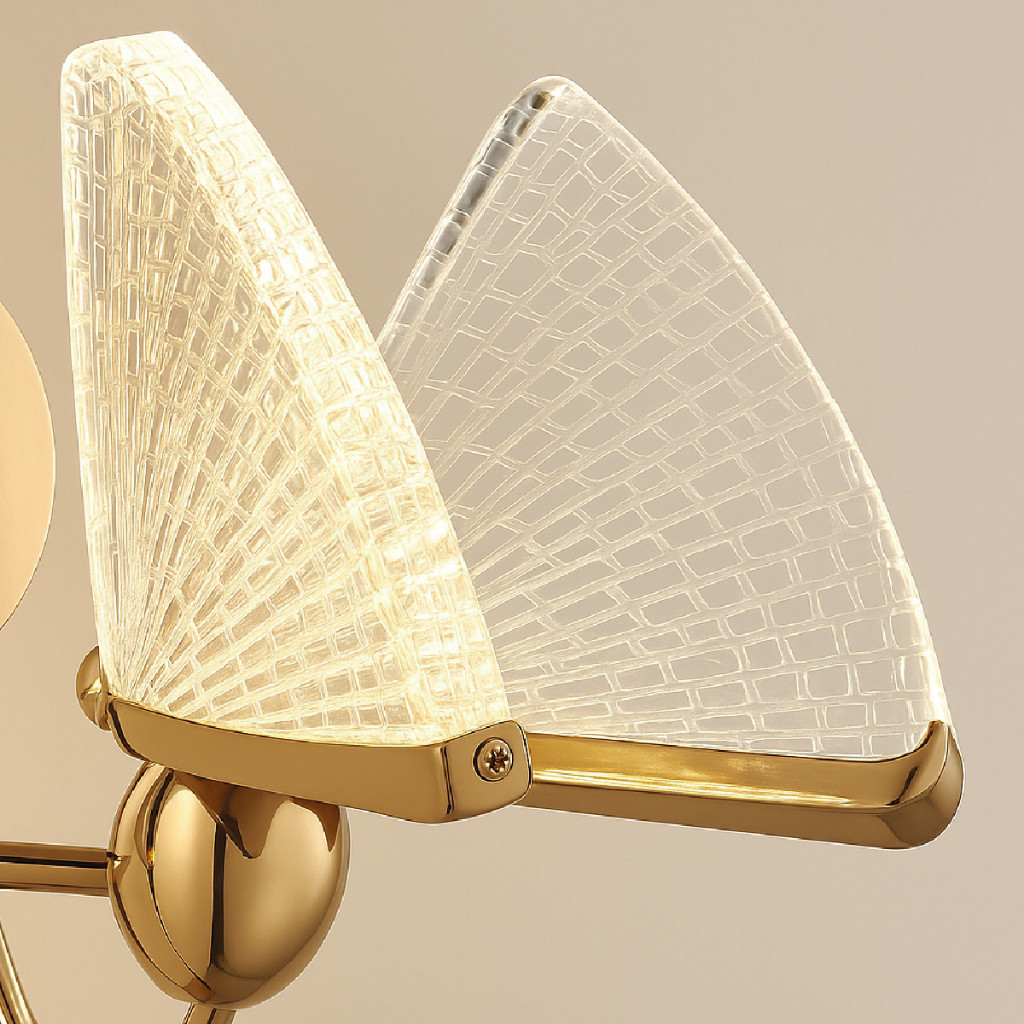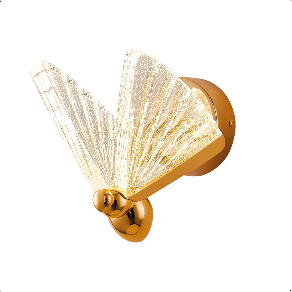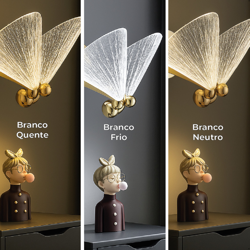 Arandela Luminária Borboleta Dourada LED Decorativa Moderna Cristal Luxo 3 Tons de luz Bivolt