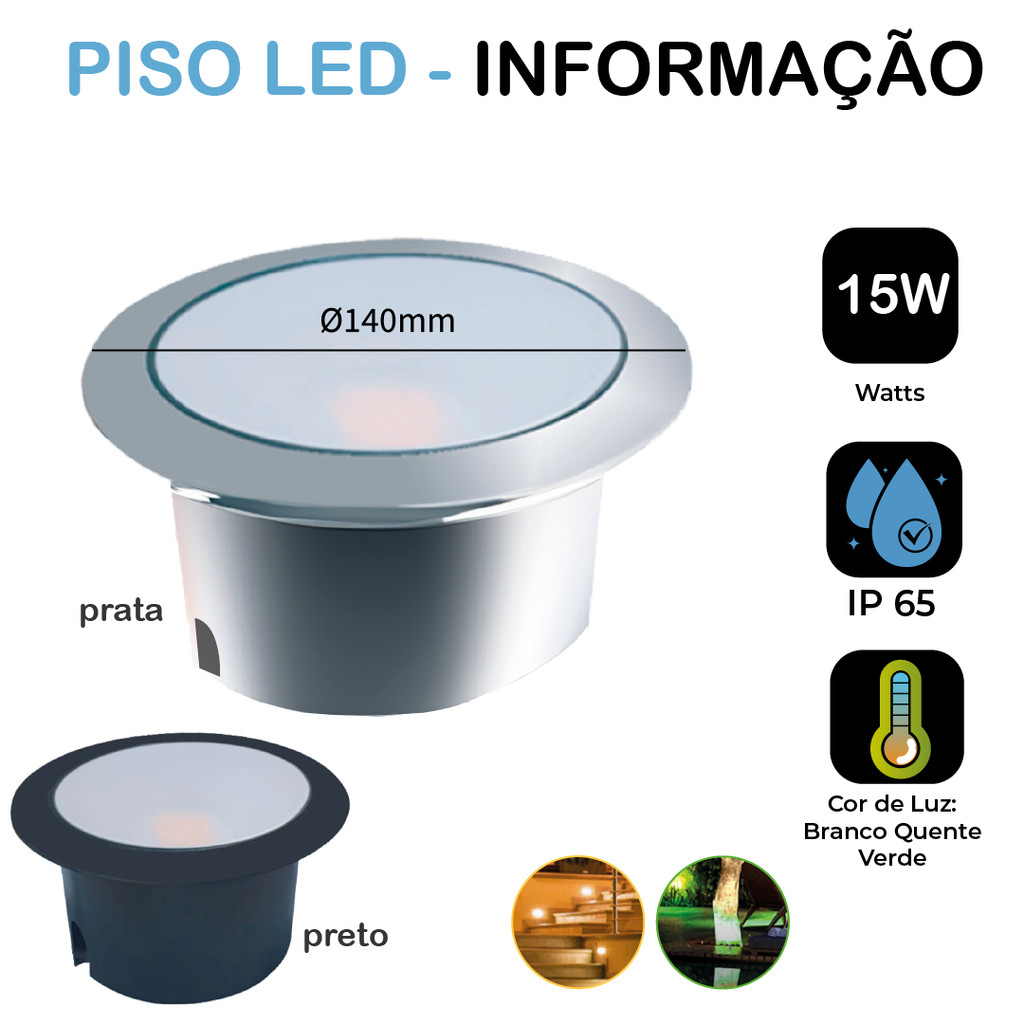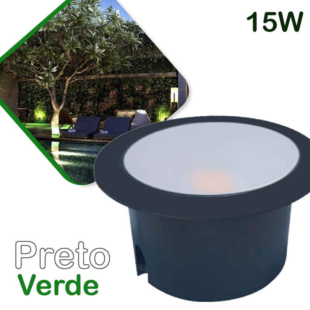 Balizador Spot LED Embutir Chão Piso Jardim 15W Luz Quente e Verde IP65 Bivolt 60Hz