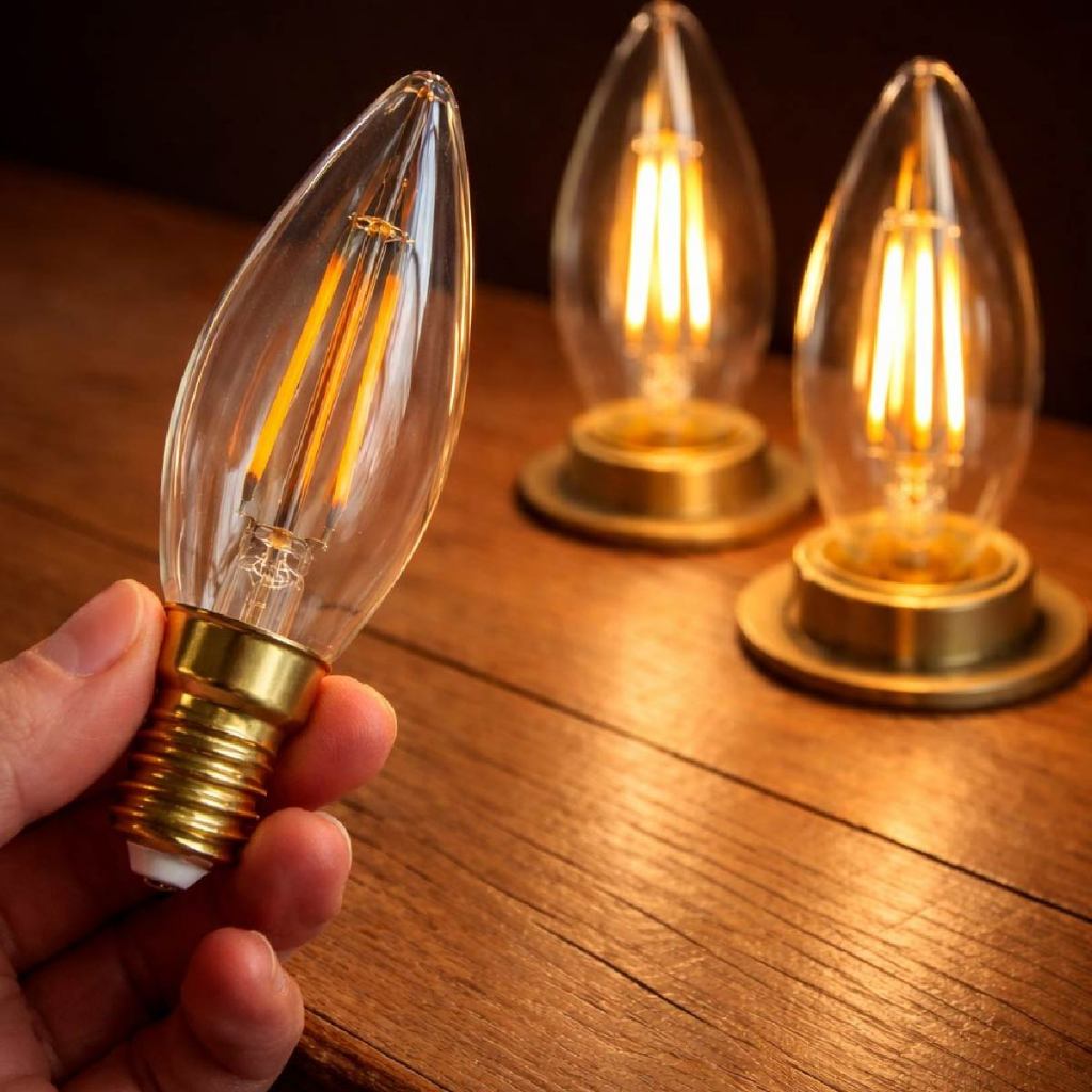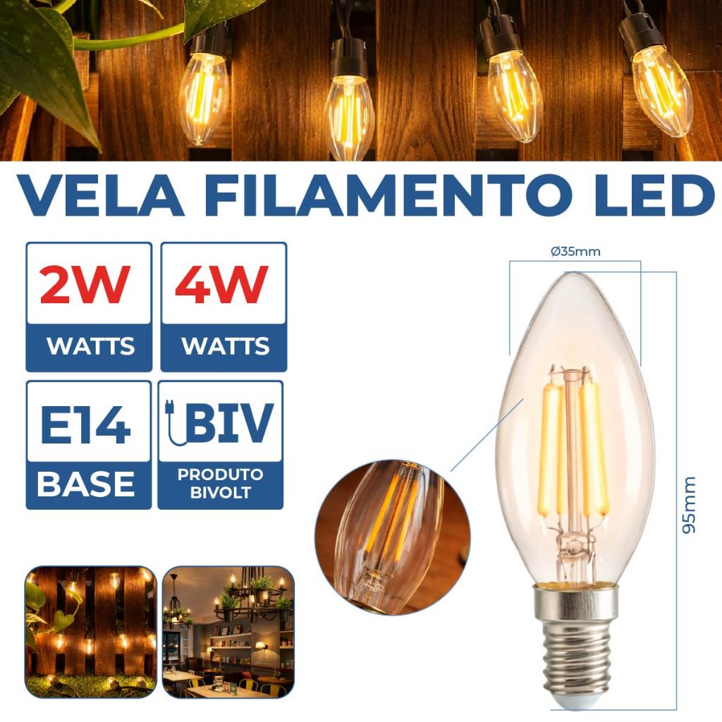 Kit 6 Lâmpada Filamento Vela Led E27 e E14 Luz Quente C35 4W Amba Retro Vintage 2200K 110V-220V Bivolt