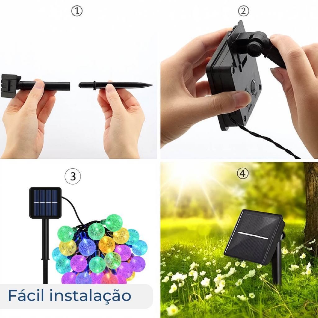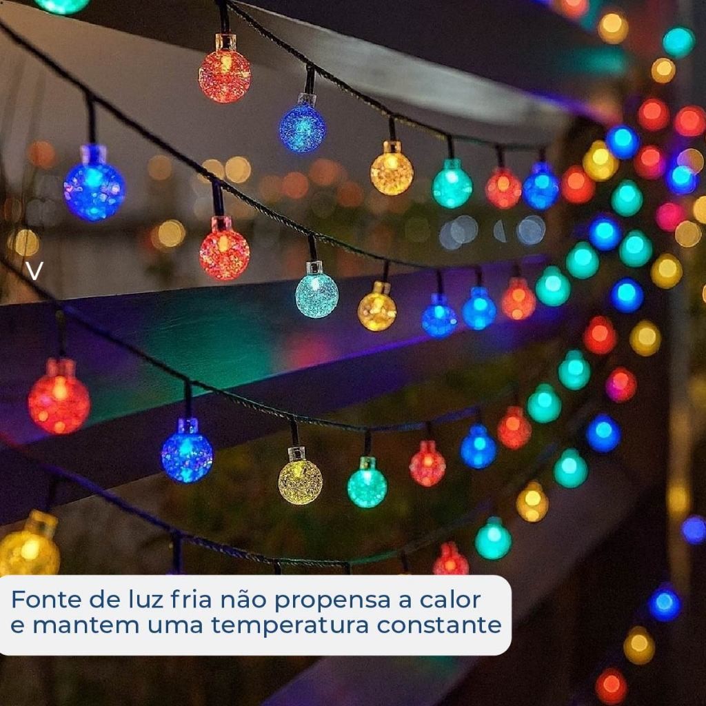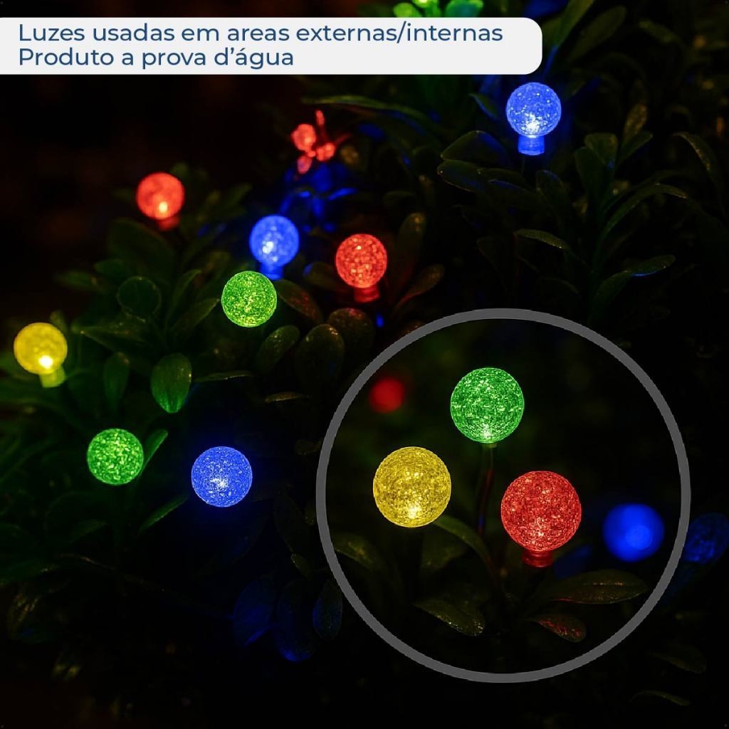 20M Luz Solar Fio de Fada Bolinha RGB 5M Led Com Placa Solar para ambientes externos