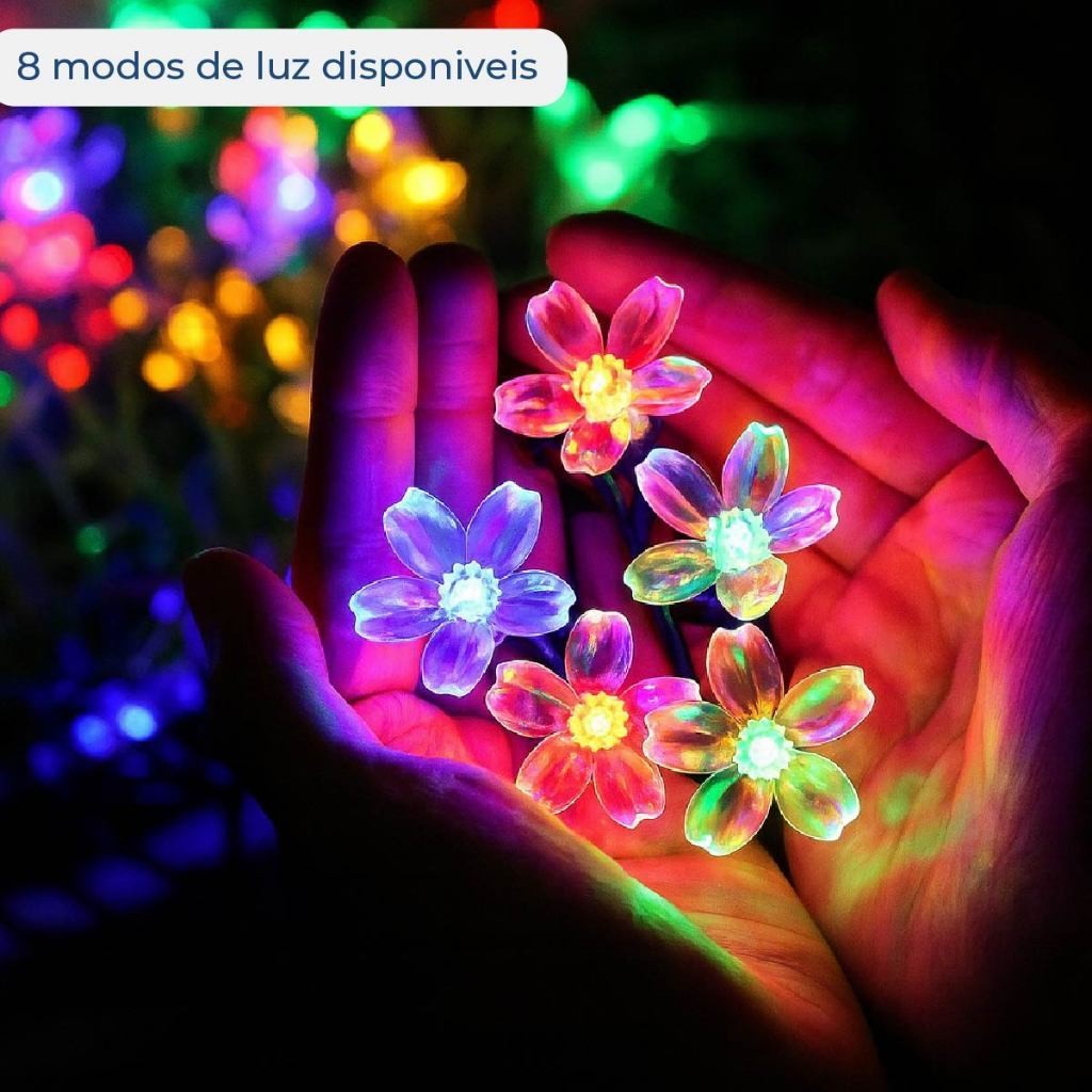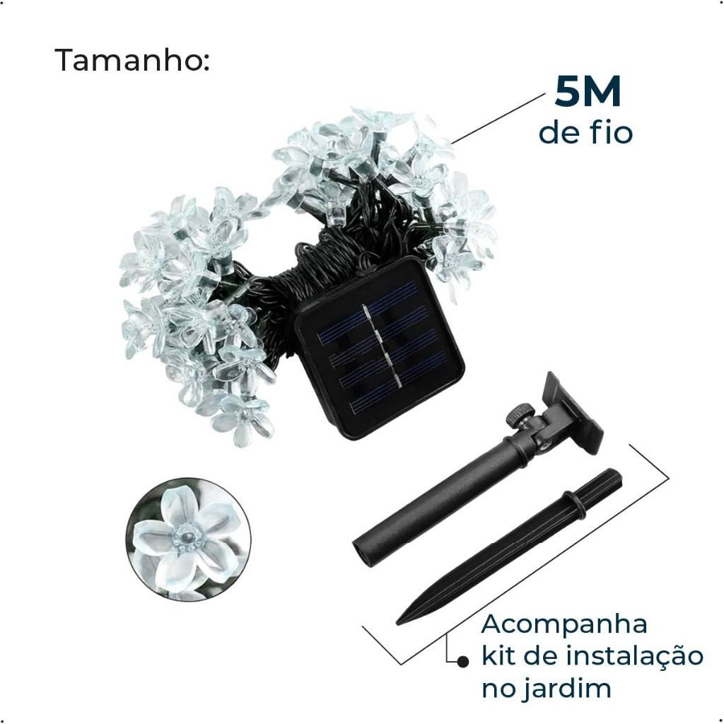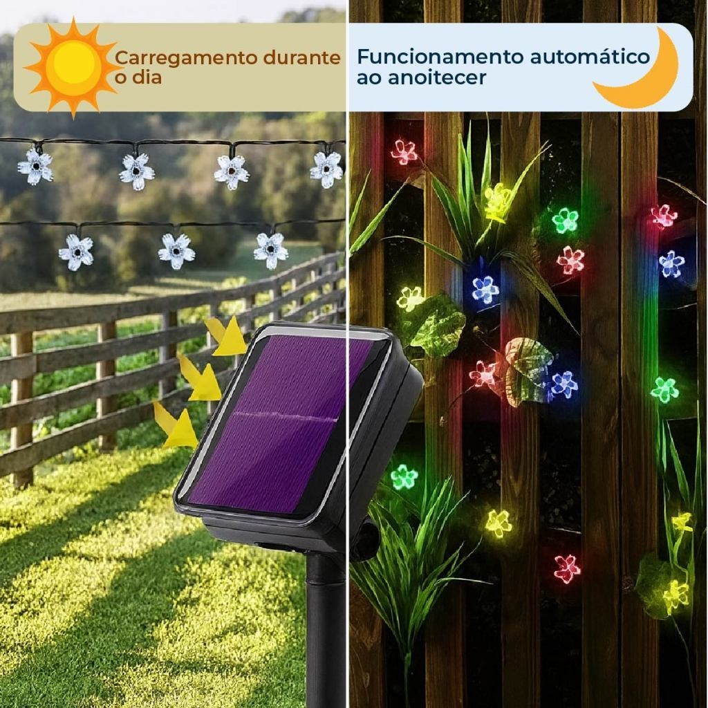 20M Luz Solar Fio de Fada Flor RGB 5M Led Com Placa Solar para ambientes externos