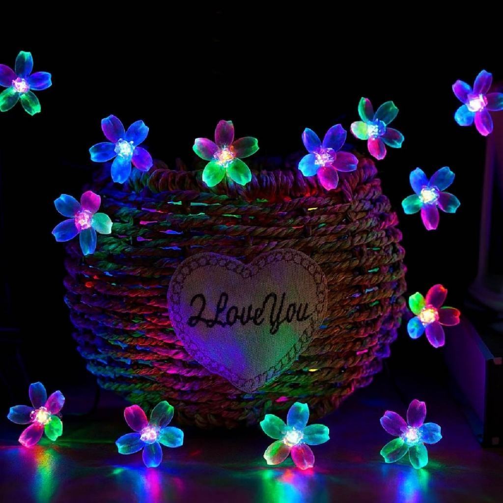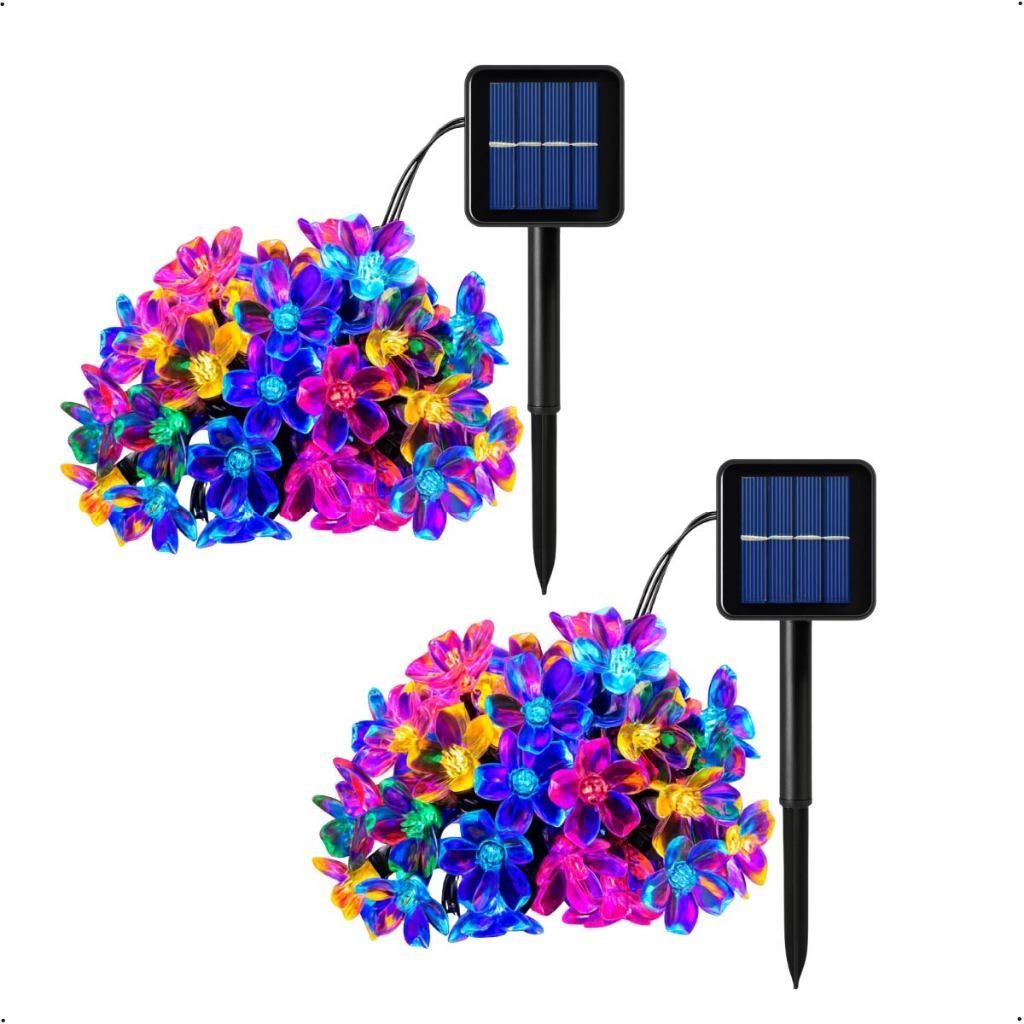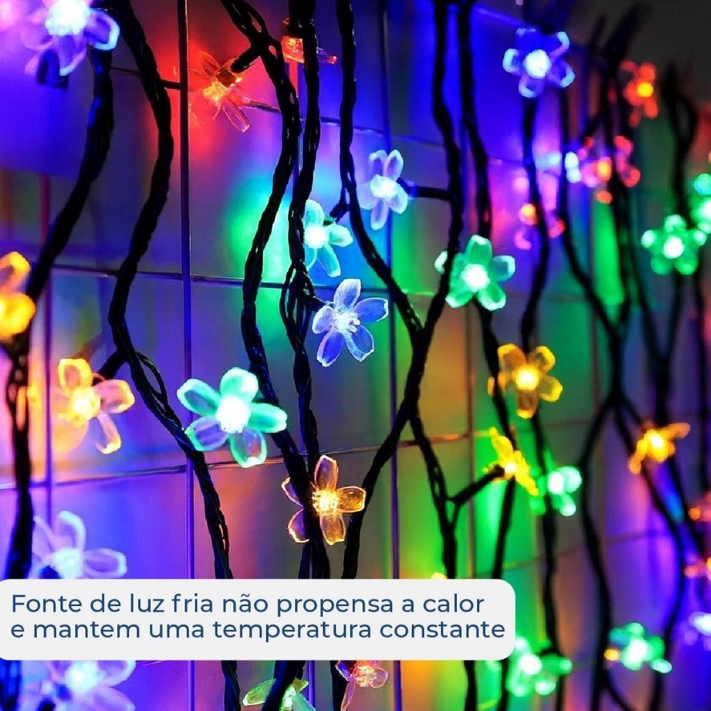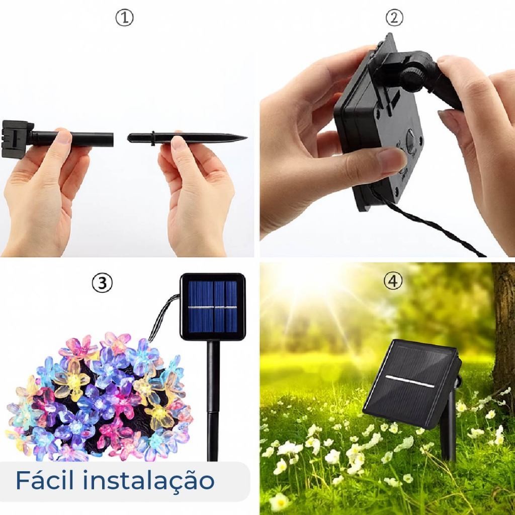20M Luz Solar Fio de Fada Flor RGB 5M Led Com Placa Solar para ambientes externos