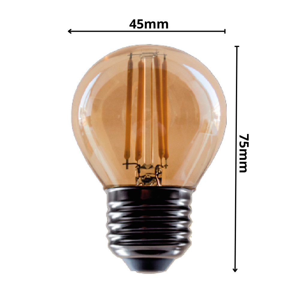 Kit 6 Lâmpada Filamento LED G45 4W E27 LUZ QUENTE (AMARELO) Âmbar Retrô Vintage 110V~220V | Bivolt