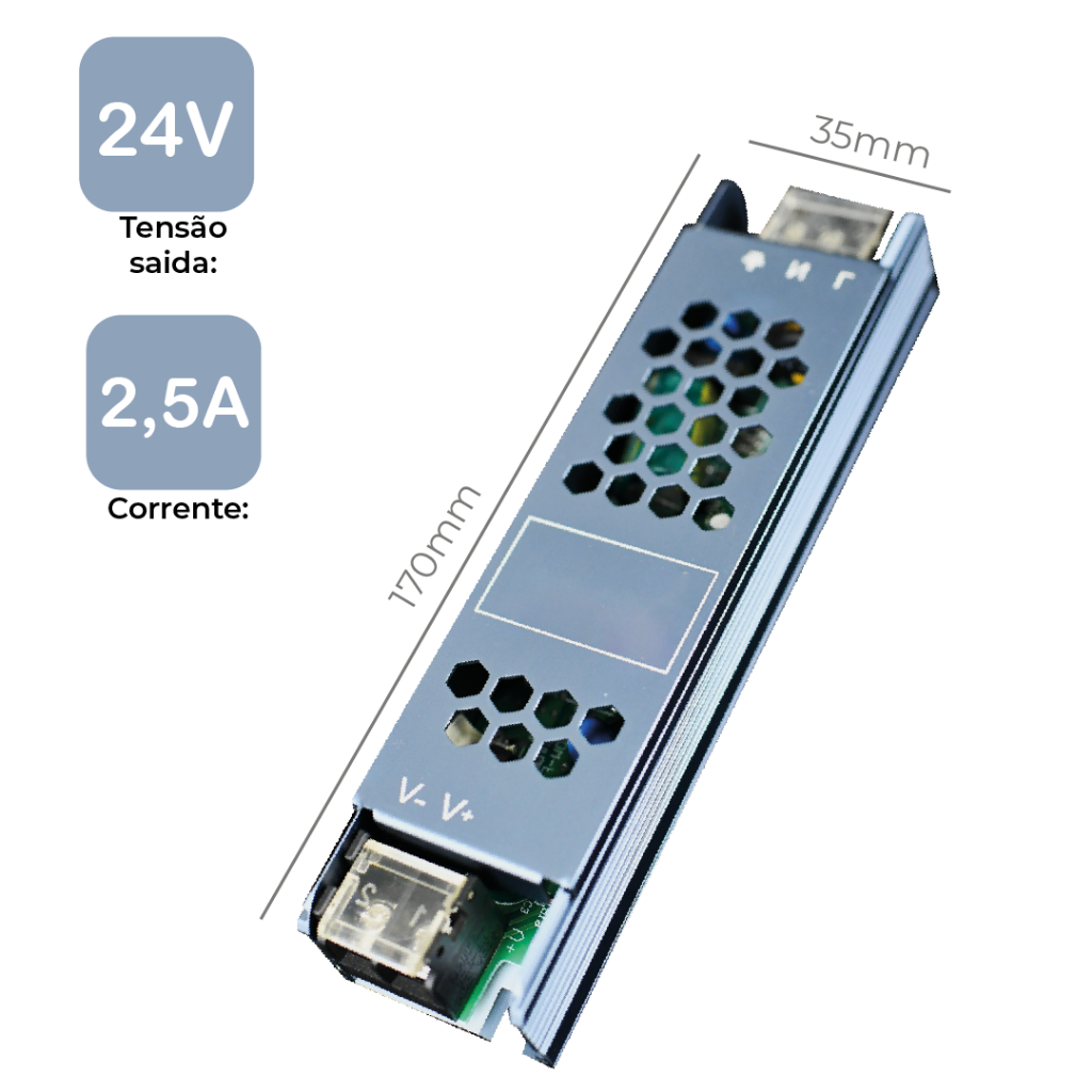 Fonte Chaveada 2,5A 24V 60w P/ Cftv Fita Led Bivolt 110V-220V