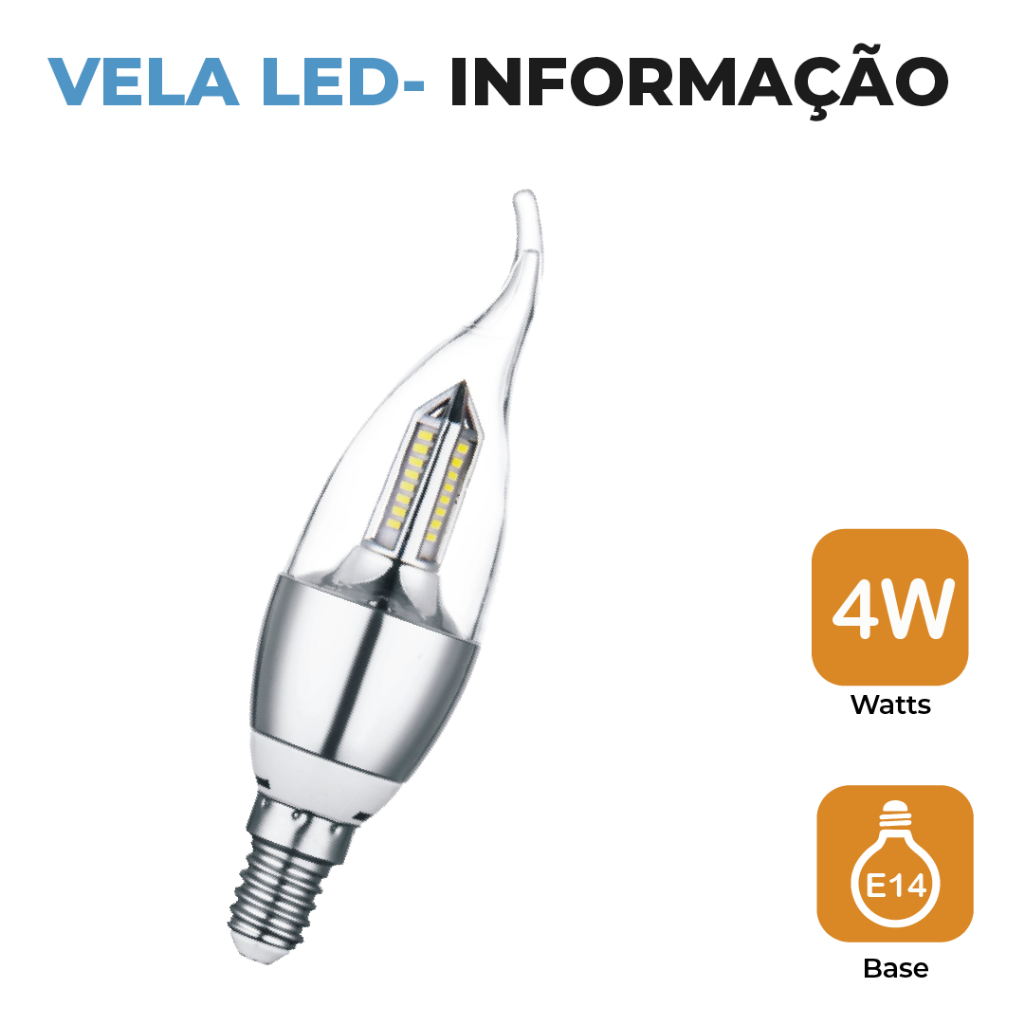 Lâmpada Vela LED para Lustre de fogo 5W Bico Torto E14 Pendente Moderno Branco Frio ou Branco Quente | Bivolt