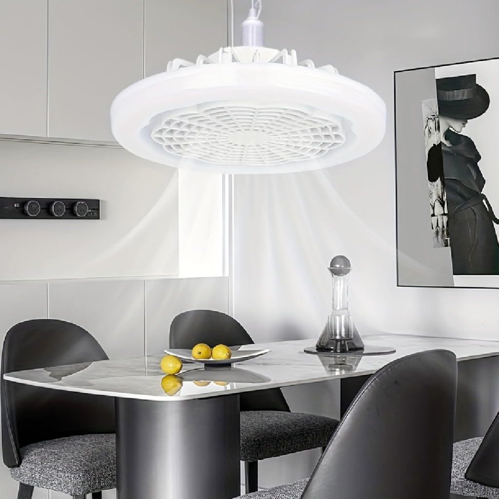 Ventilador de Teto com LED Lâmpada E27 Controle Remoto Luminária Economica de Energia Bivolt