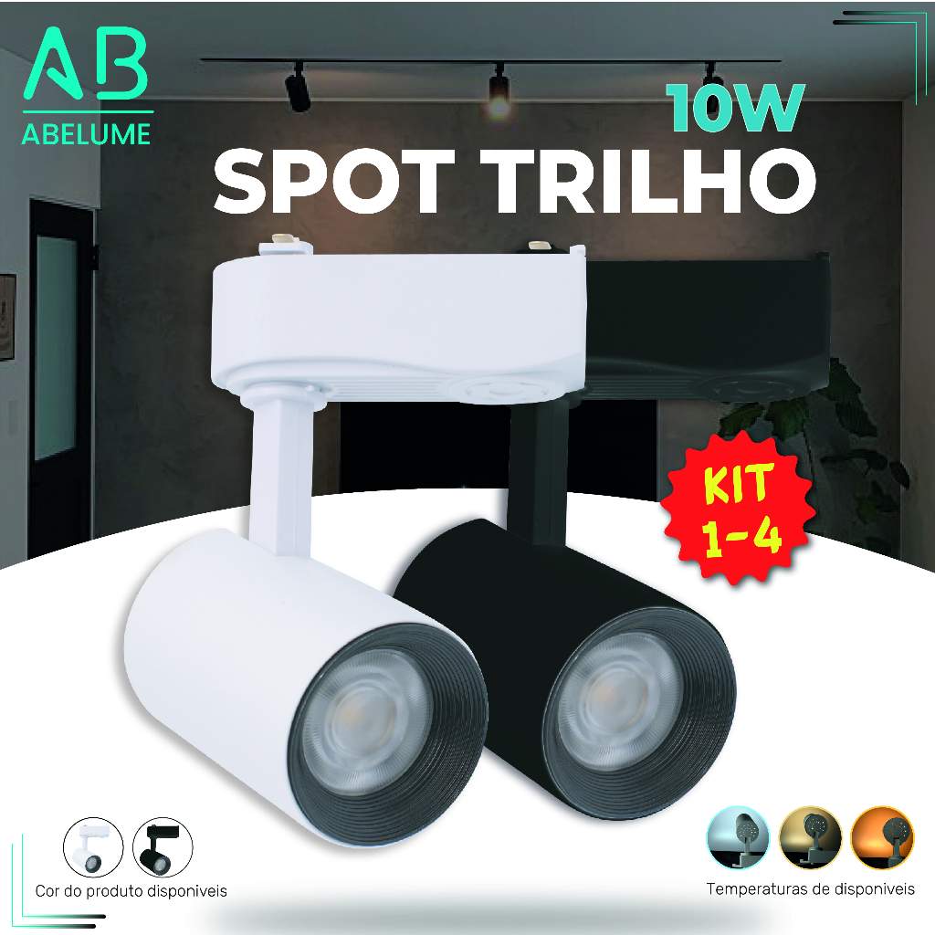 Trilho Spot LED para trilho eletrificado Preto e Branco 10W 360° | Luz Branca, Neutra e Amarela | Bivolt 110V-220V