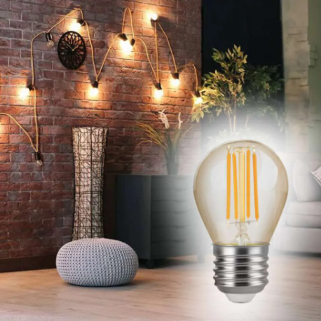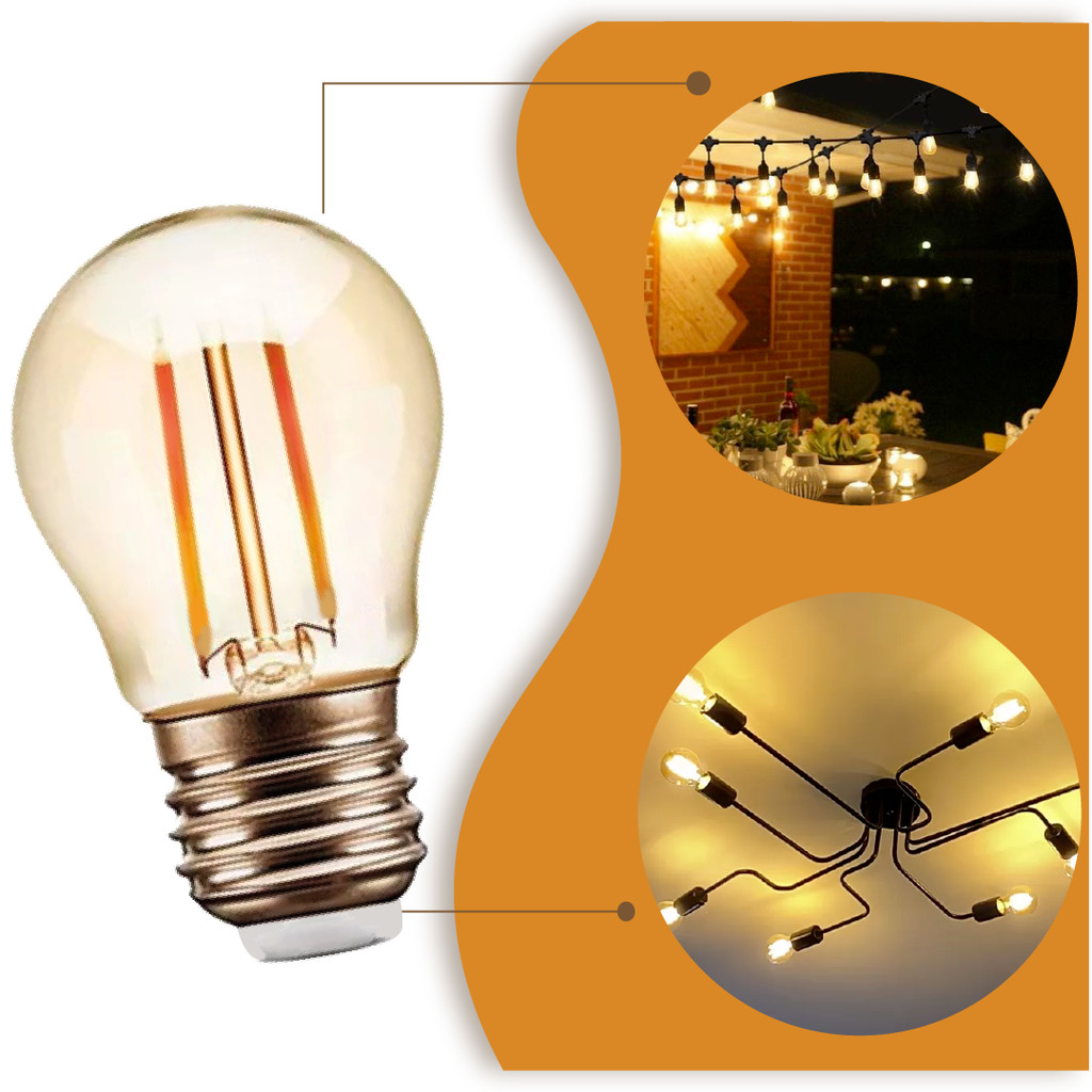 Lâmpada Filamento LED G45 2W E27 LUZ QUENTE 2,300K Âmbar Retrô Vintage 110V~220V Bivolt