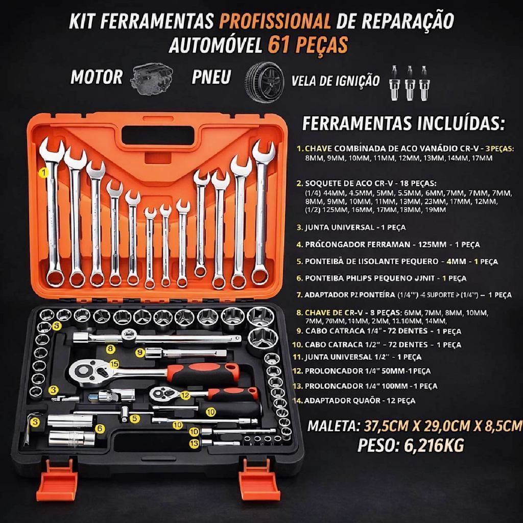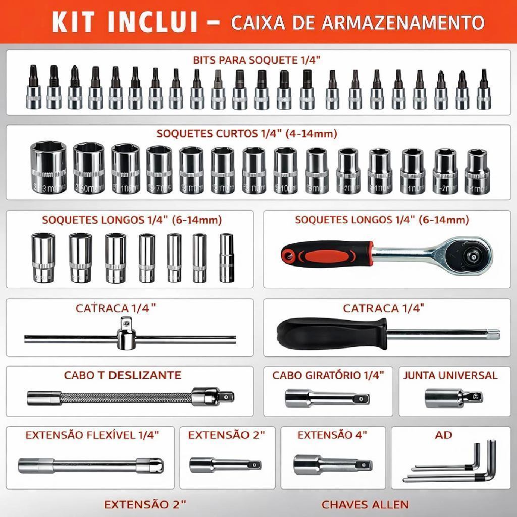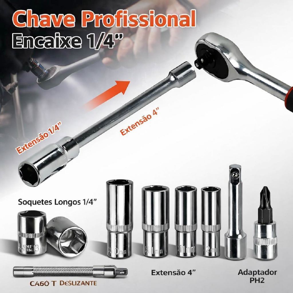 Maleta Soquete Chave Combinada Catraca Alta Durabilidade de Aço com Maleta Organizadora
