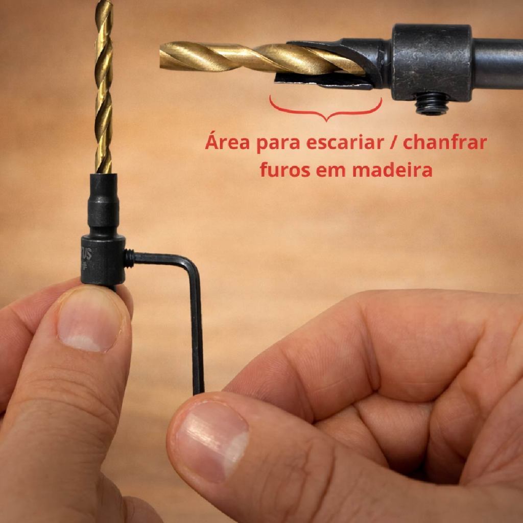 Jogo Broca Escariadora para Madeira com Escaneadores Ajustáveis Alta Durabilidade