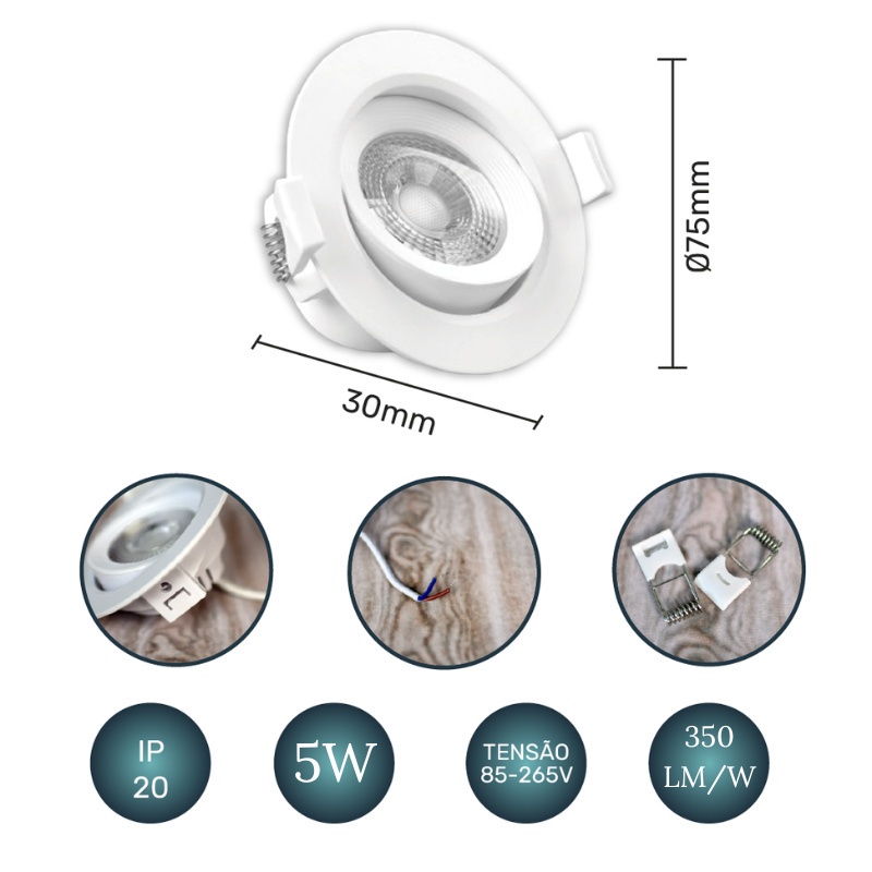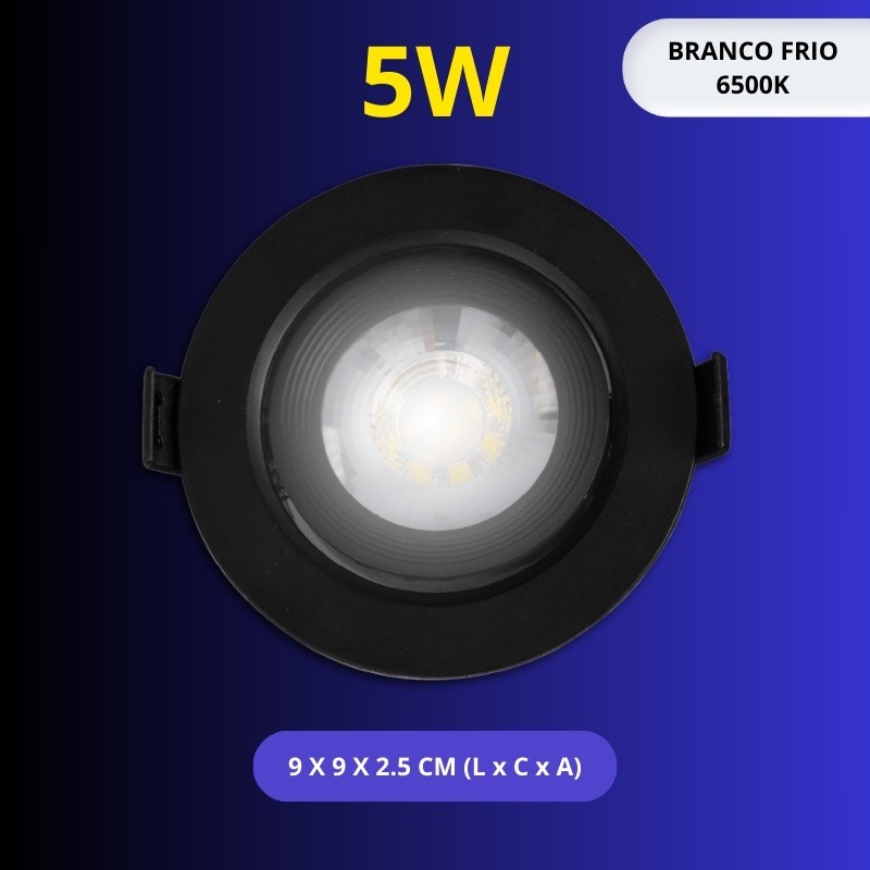 Luminária Spot Led Redondo Direcionável 5W Embutir Gesso Teto Preto | Branco Frio 6500K (Luz Branca) | Branco Quente 3000K (Luz Amarela) Bivolt Spot Super LED Pronta Entrega