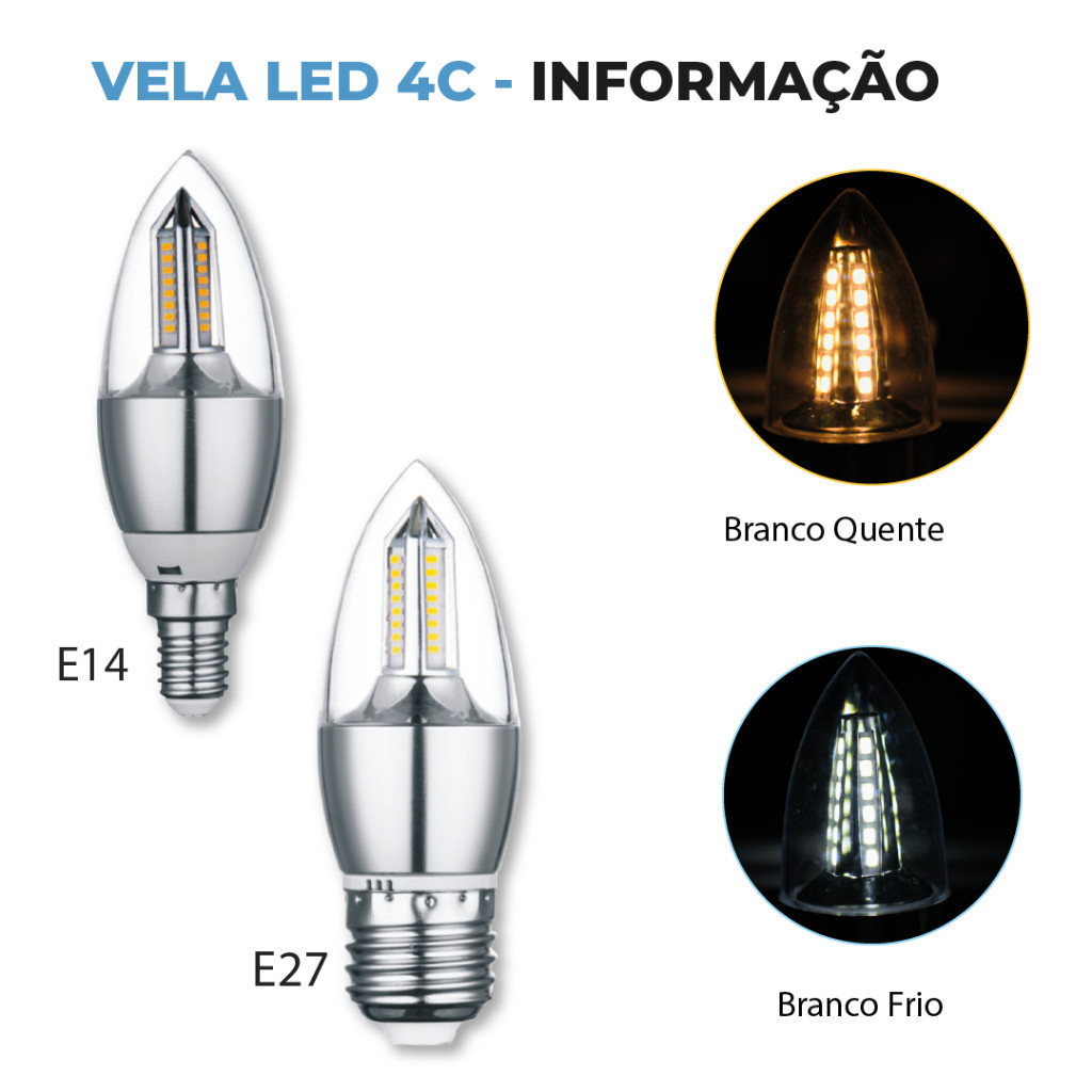 Kit 10 Lâmpada Vela LED para Lustre 4W E27 Pendente Modelo Moderno Branco Frio ou Branco Quente 110V-220V | Bivolt