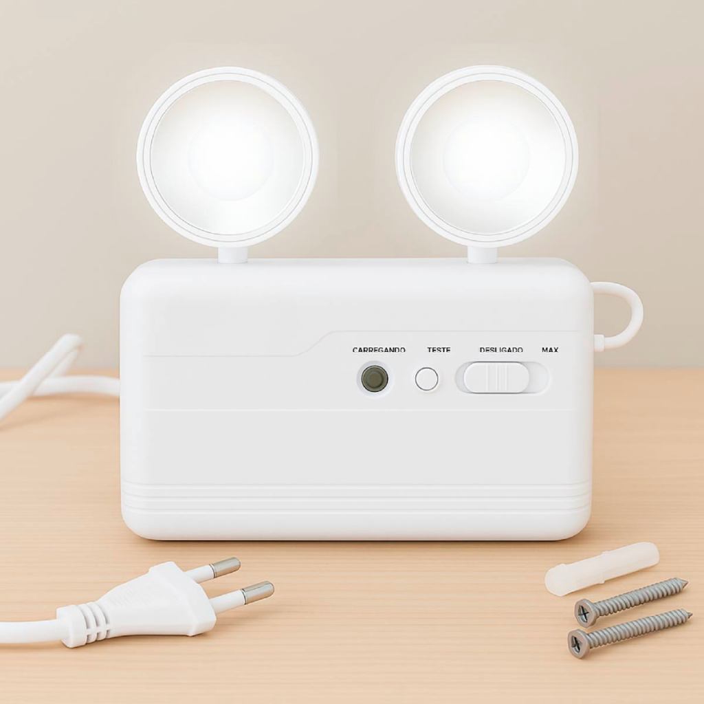 Kit 10 Luminária de Emergência Led 20W Luz Branco Frio com 2 Farol 40 LEDS Modelo Novo