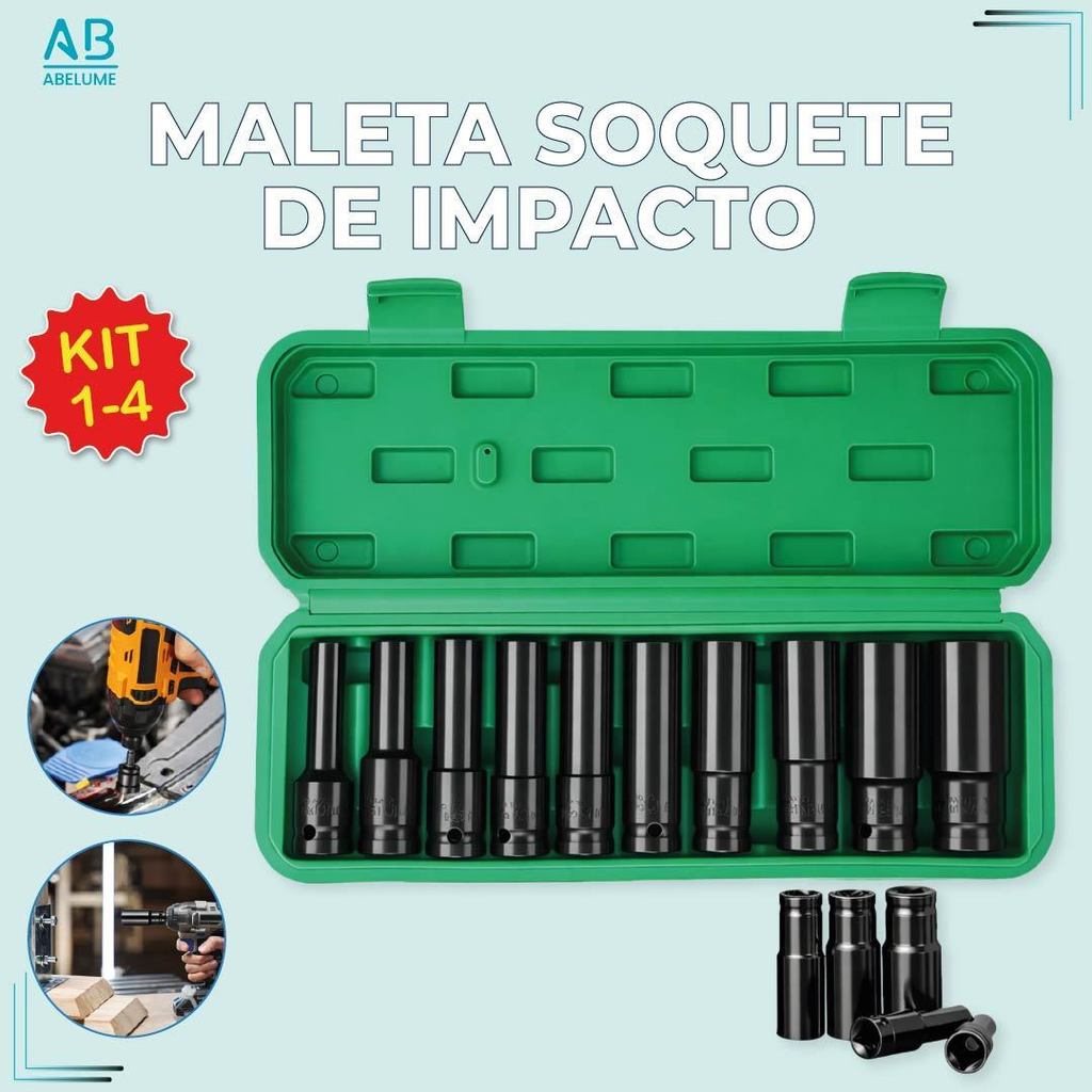 Kit Maleta Soquete de Impacto Material de Aço Carbono Alta Qualidade Soquete Sextavado Longo