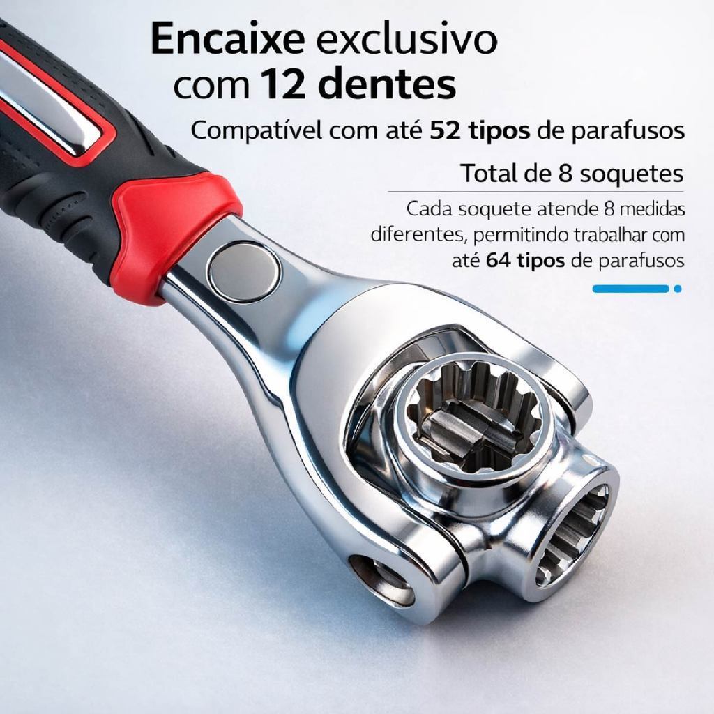Chave Soquete com 8 Bocas Multifição 12 a 19mm Uso Profissional
