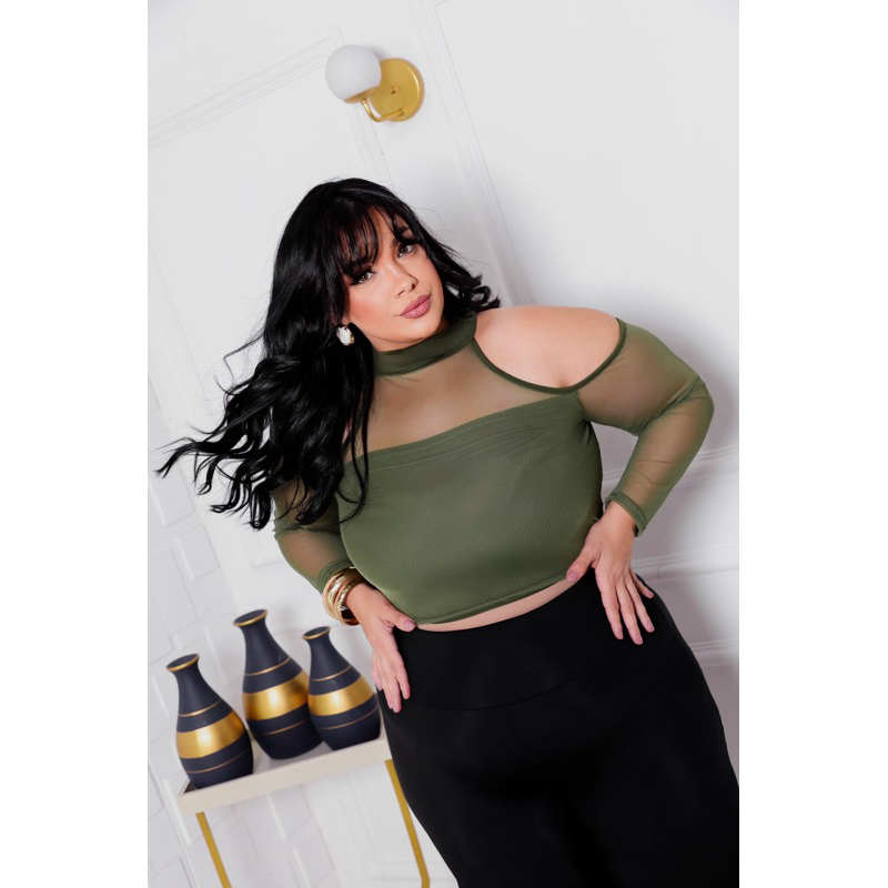 Cropped Tule Gola Alta Plus Size