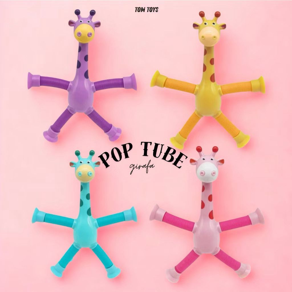 Kit 1/2/4 Pop Tube Tubo Esticado com Led Girafa ou Robô Brinquedo com Ventosa Infantil Sensorial, Girafa Sanfona Ventosa