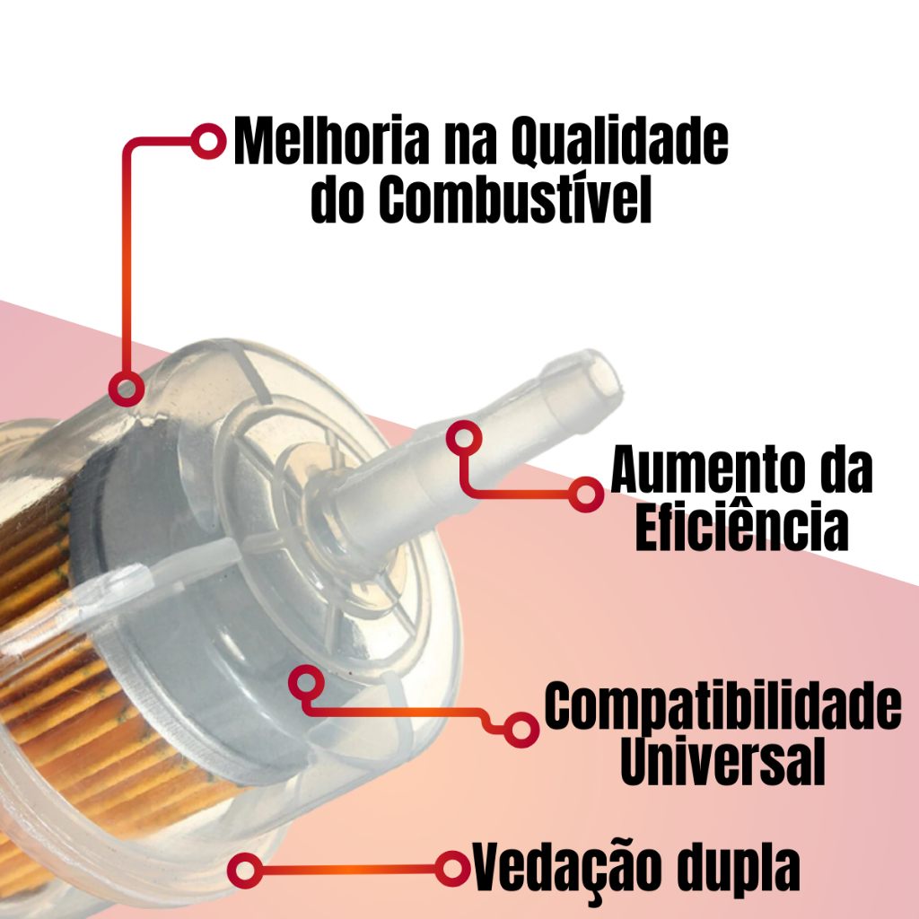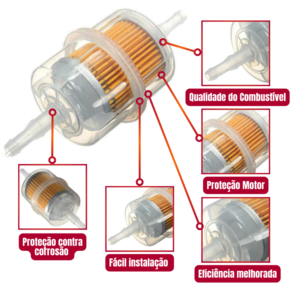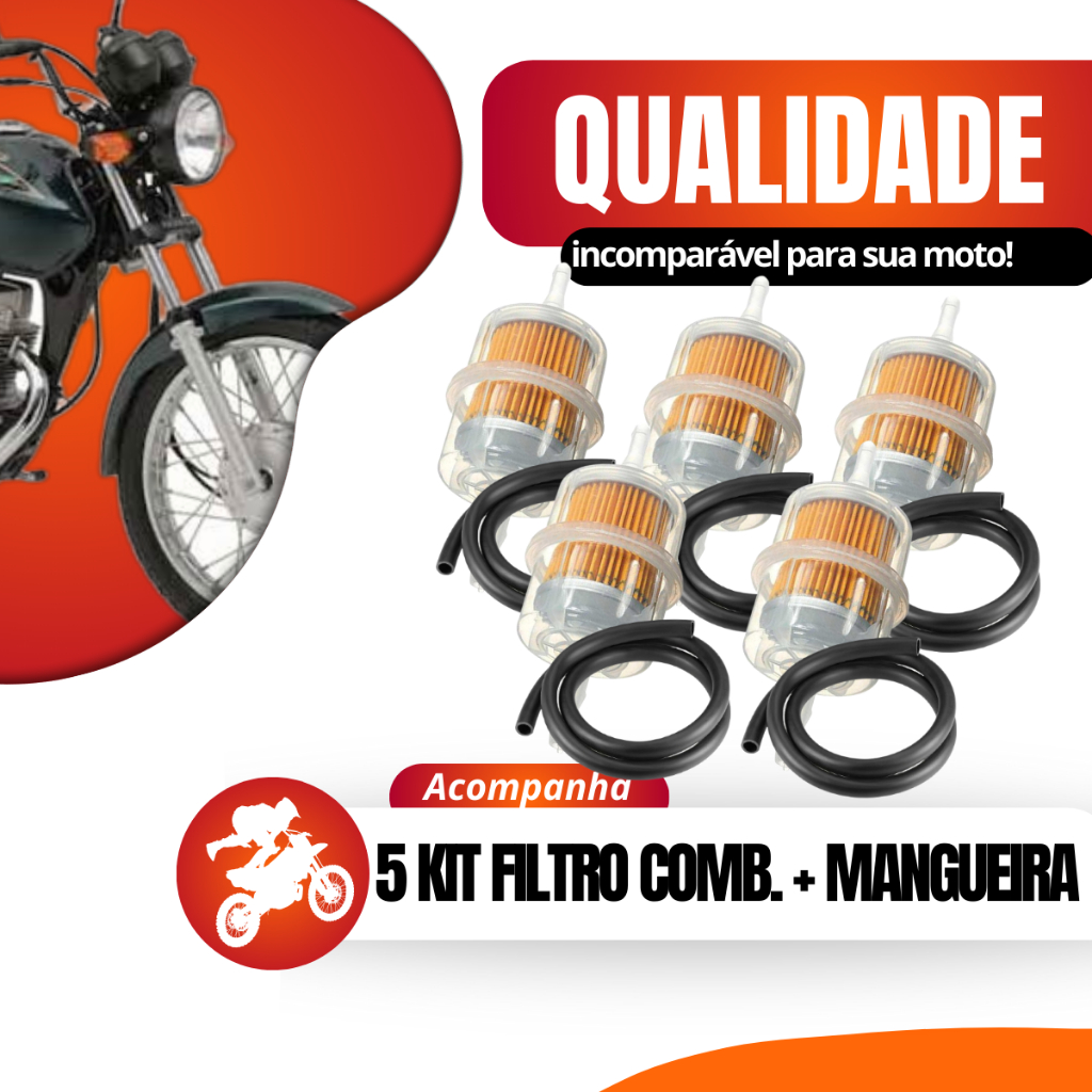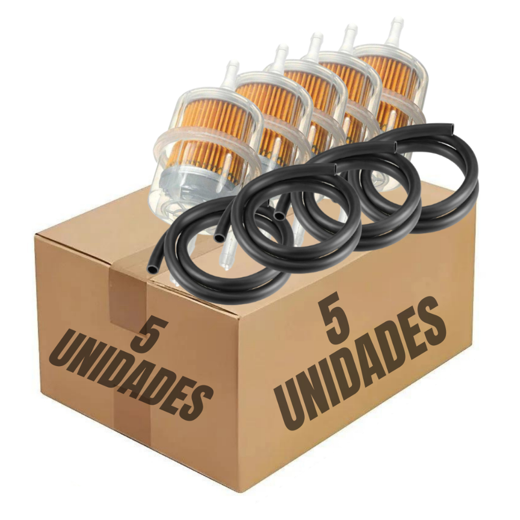 Kit 5 Filtro Combustível Gasolina Motos Carburadas + Mangueira Universal Cg Titan Fan 125 150 Ybr