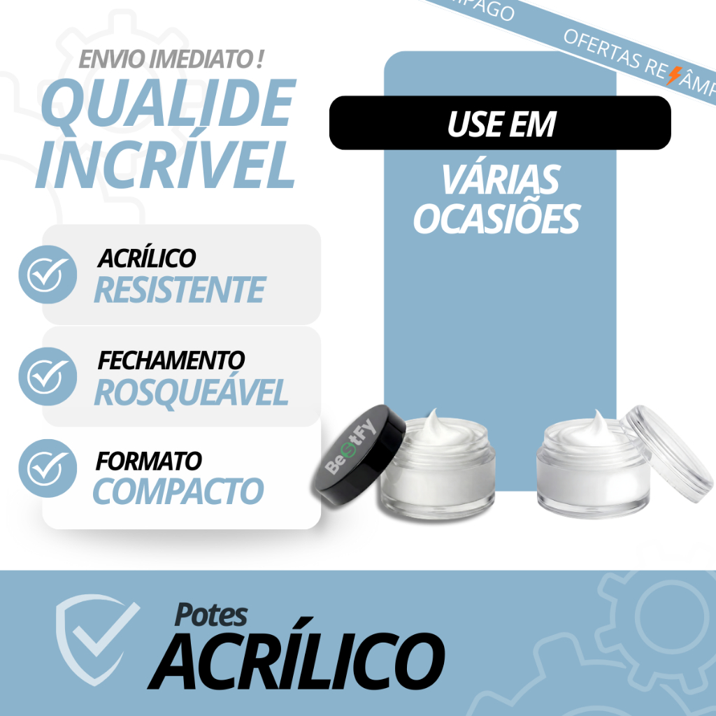 Kit 6 a 102 Pote Acrilico 5g com Tampa Rosqueável Para Glitter Creme Lembrancinha Amostras
