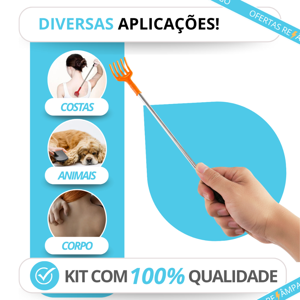 Kit 3 Coçador Costa Cabeça Mãozinha Massageador em Metal Resistente com Cabo Fixo Portatil Duravel