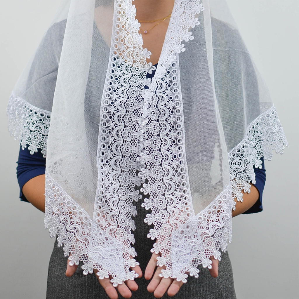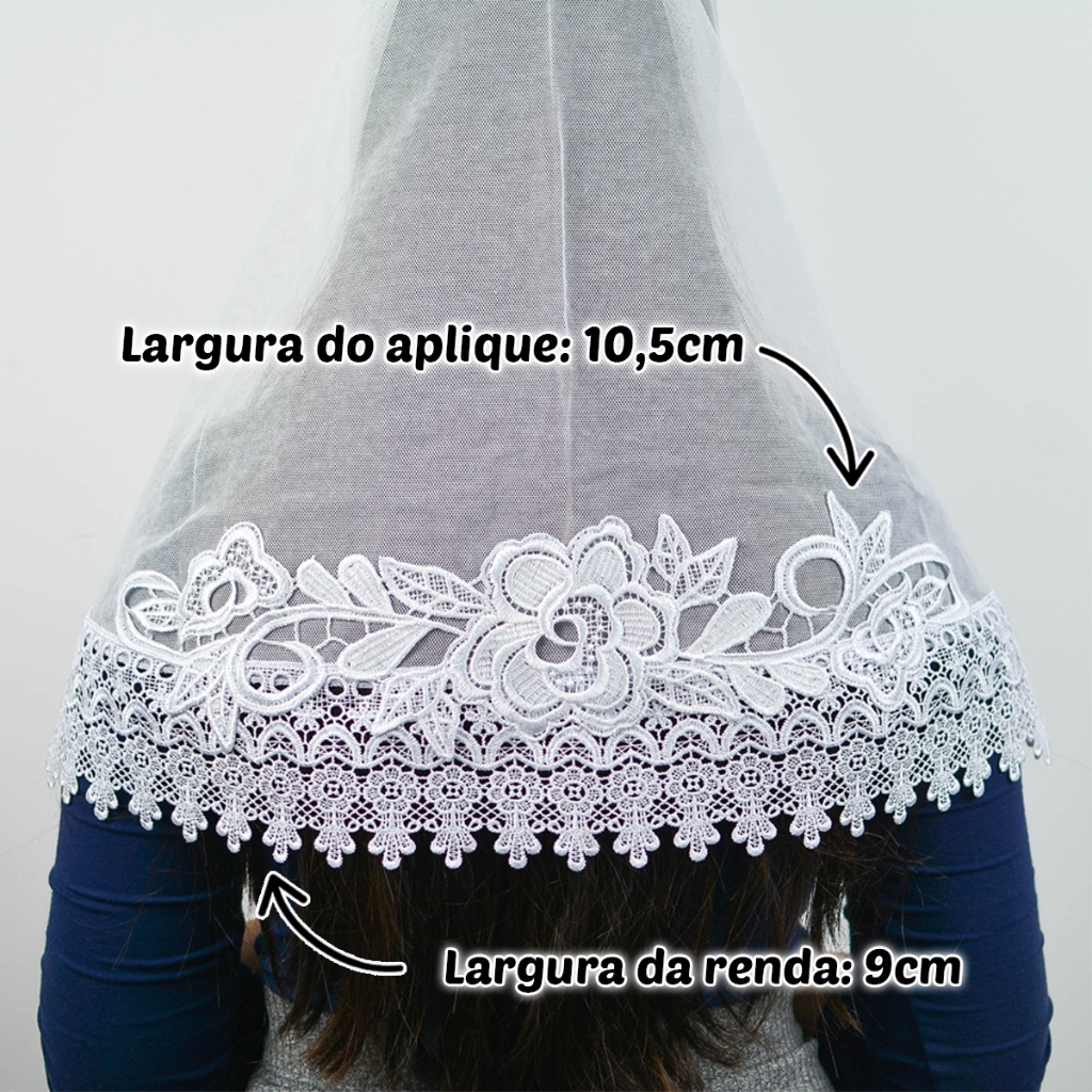 Véu Ccb Luxo Adulto Renda Larga Com Aplique Floral (Sandra)