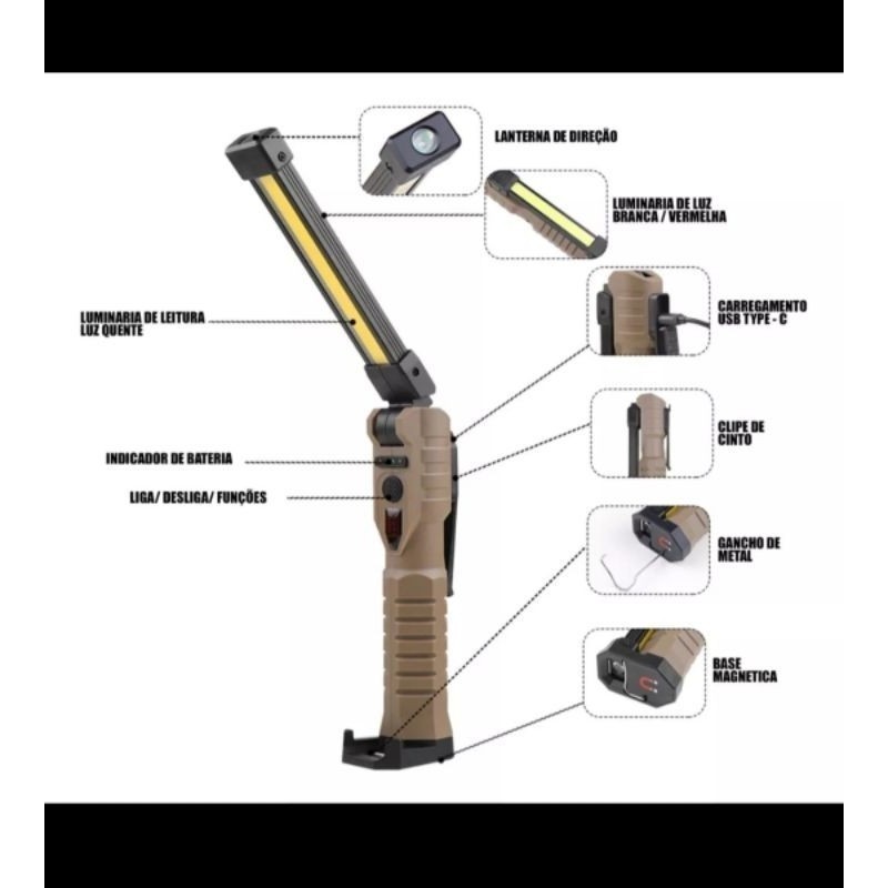 lanterna led Lâmpada de trabalho para mecânico com Power bank de bateria Fixação por atração magnética forte