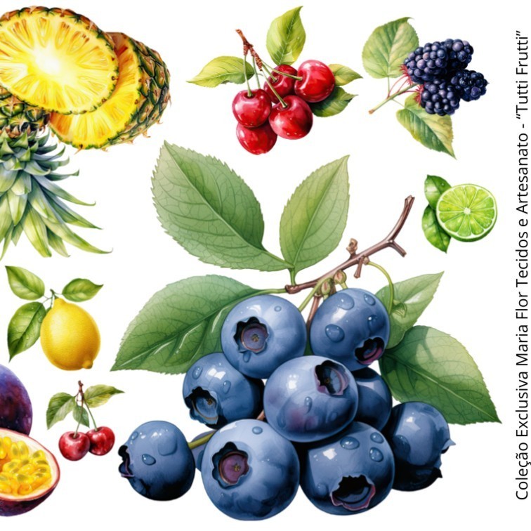 DTF Transfer Termocolante Imagem Téxtil Tutti Frutti +10 Imagens Maria Flor Tecidos