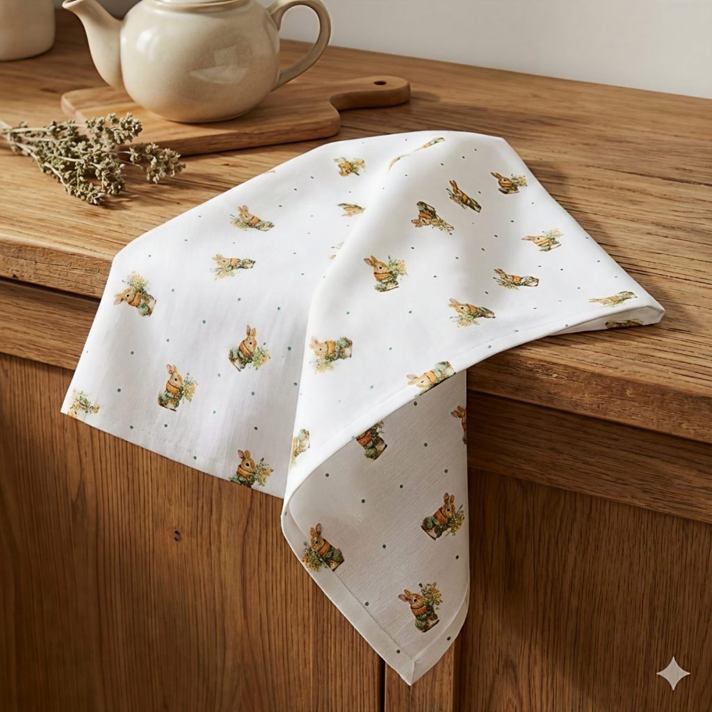 Pano de Copa Premium Estampado Páscoa Vila dos Coelhos 50x70cm 100% Algodão Guardanapo