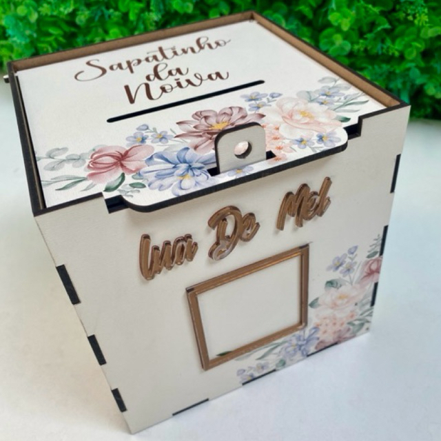 CAIXA COFRE PARA CASAMENTO SAPATINHO DA NOIVA, GRAVATA OU LUA DE MEL