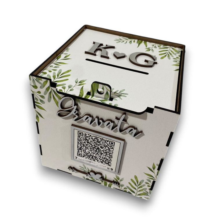 CAIXA PARA CASAMENTO LUA DE MEL PERSONALIZADA COM NOME E QRCODE