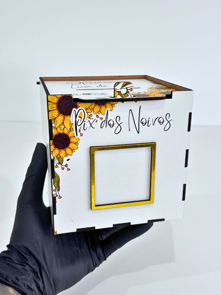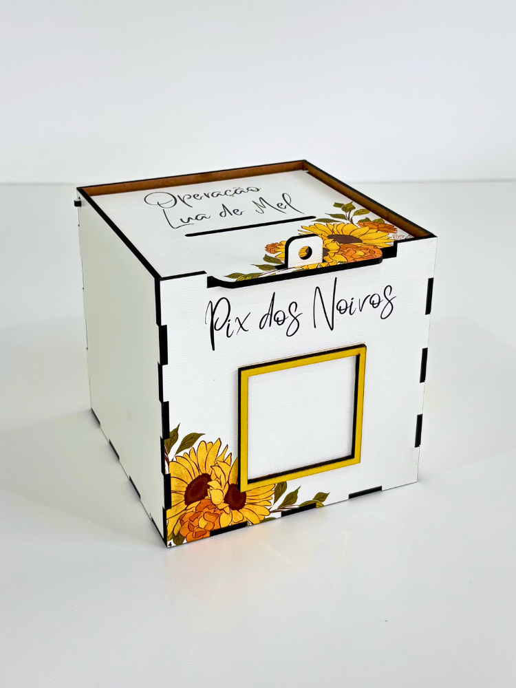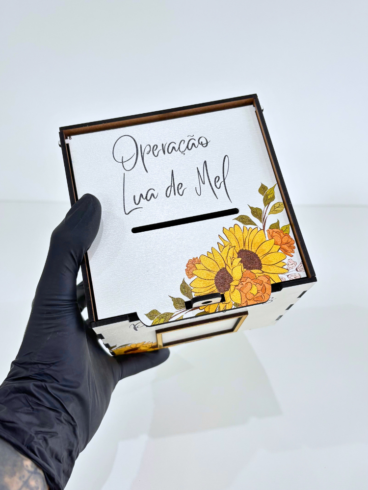 Caixa para Corte da Gravata e Sapatinho Casamento Operação Lua de Mel Girassol