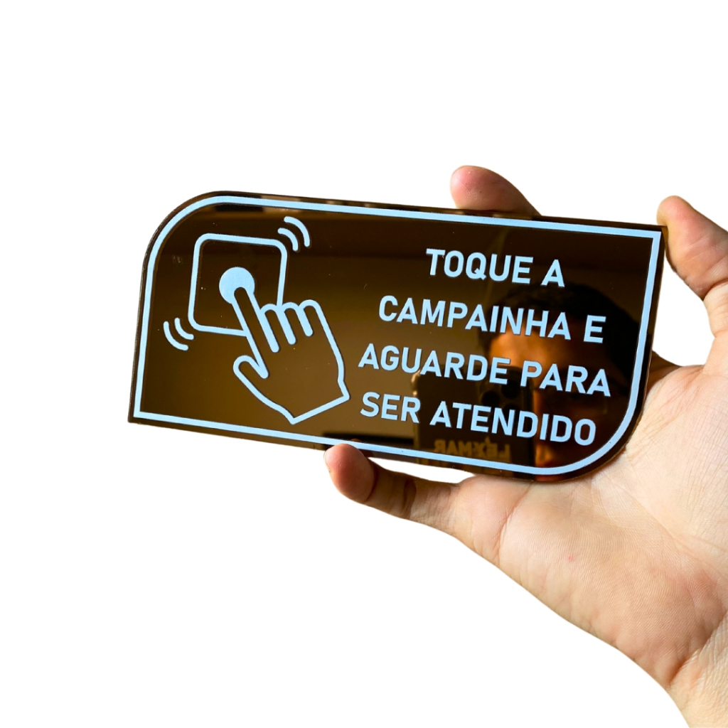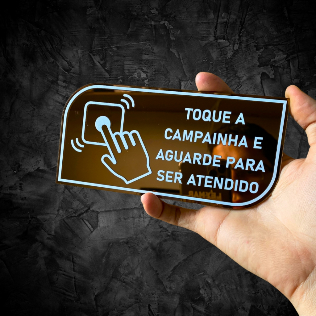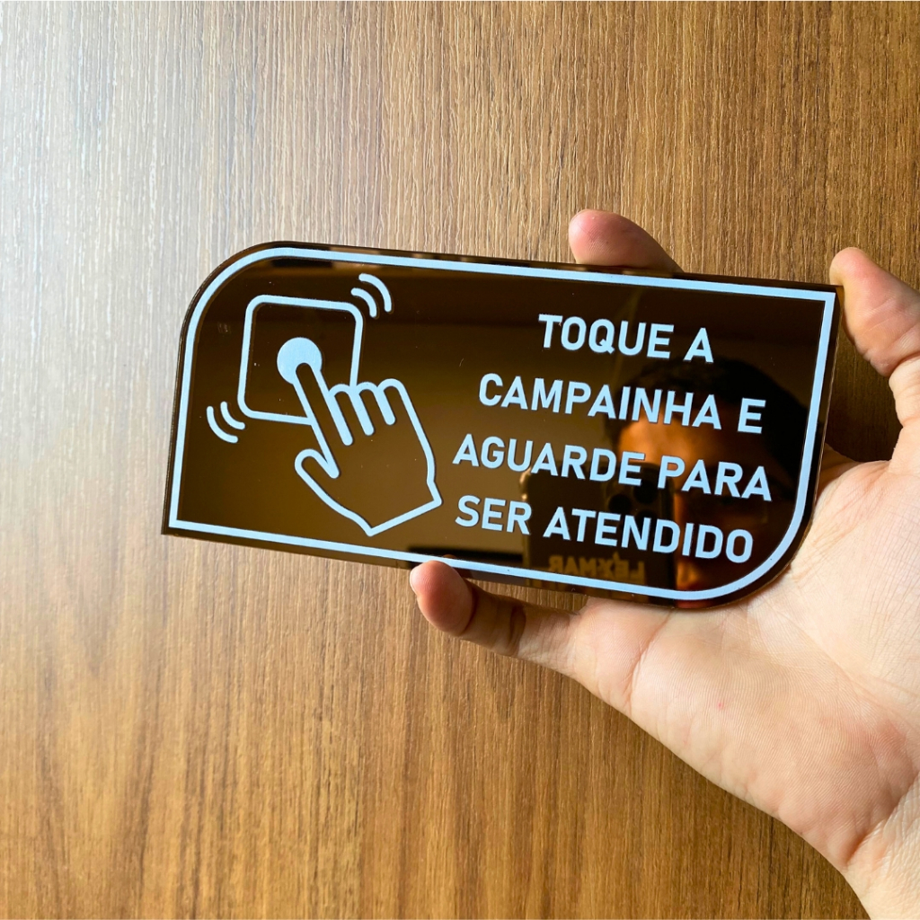 PLACA TOQUE A CAMPAINHA COM DUPLA FACE EM ACRILICO ESPELHADO