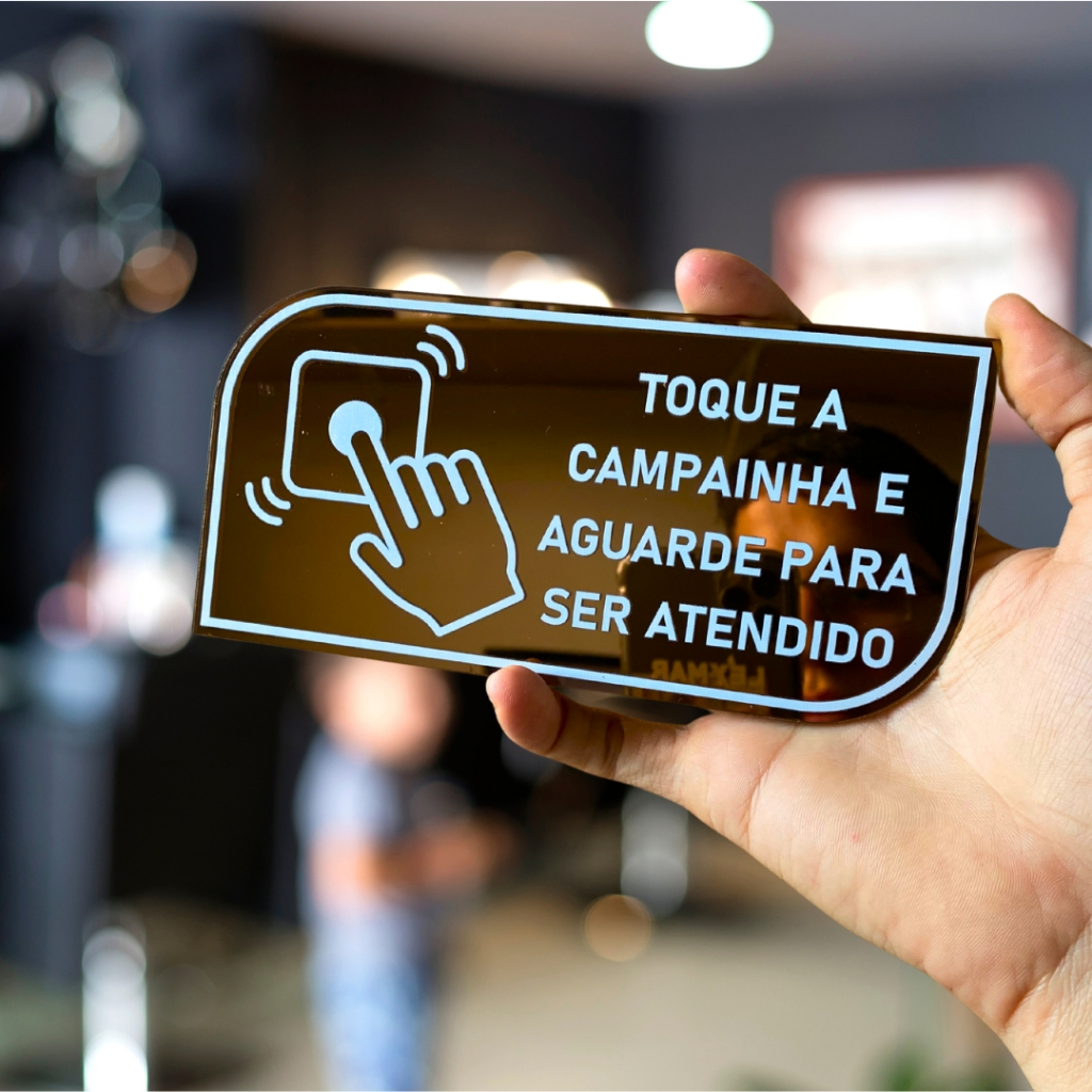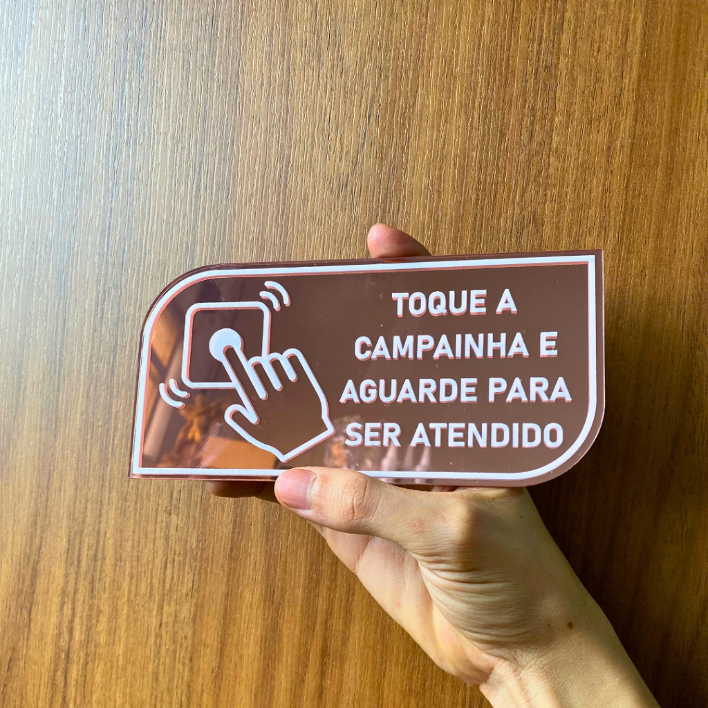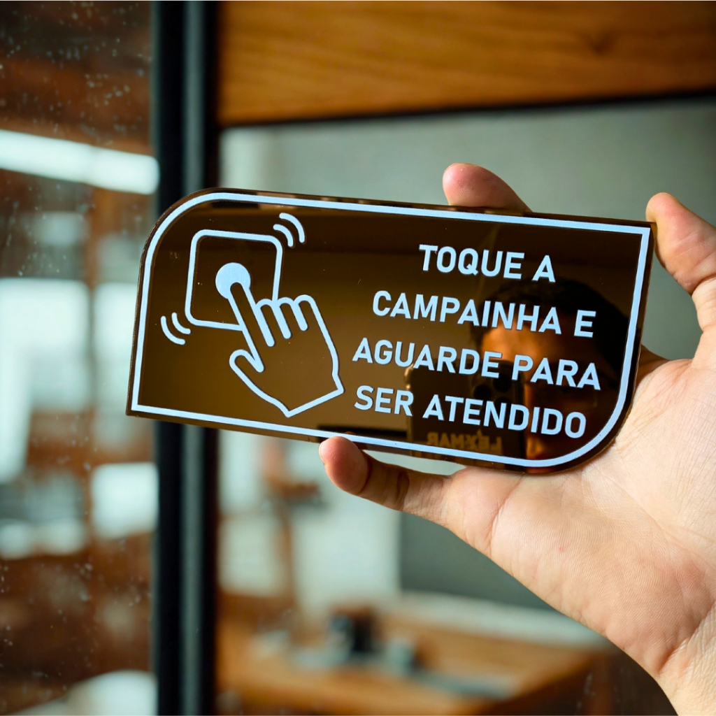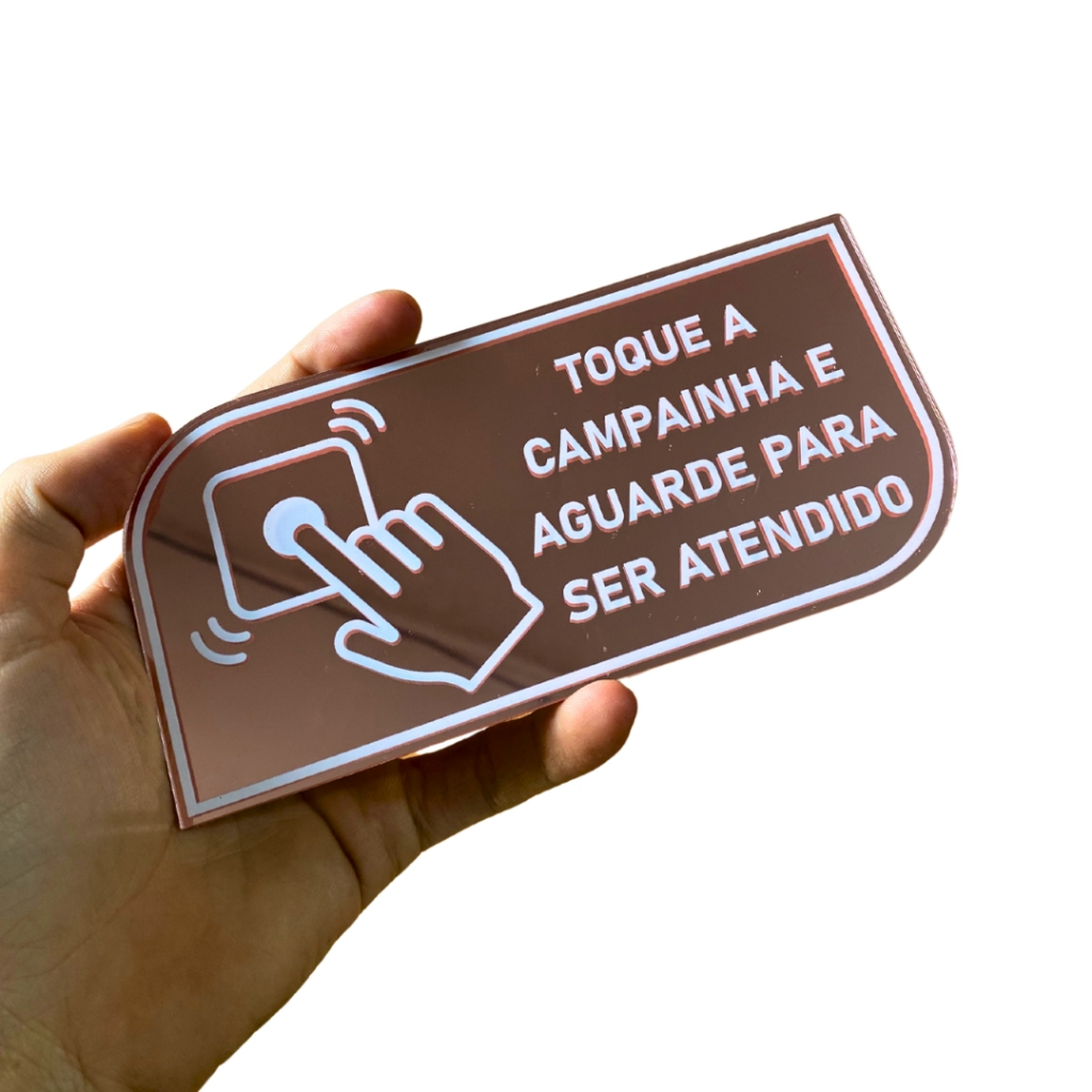 PLACA TOQUE A CAMPAINHA COM DUPLA FACE EM ACRILICO ESPELHADO