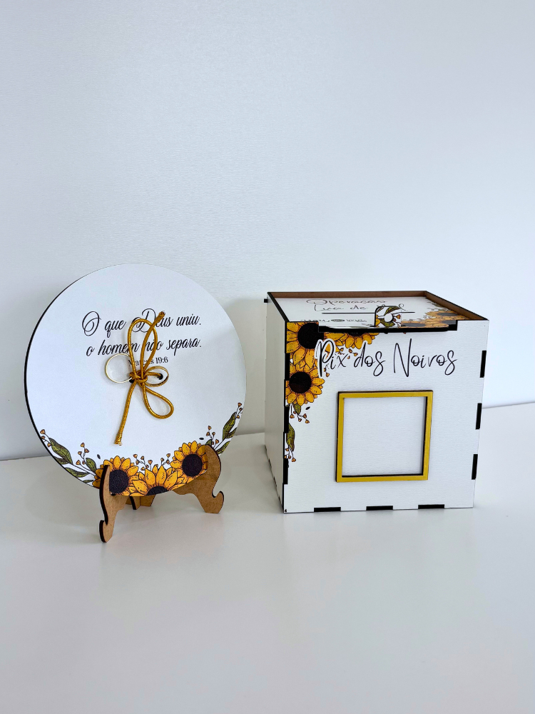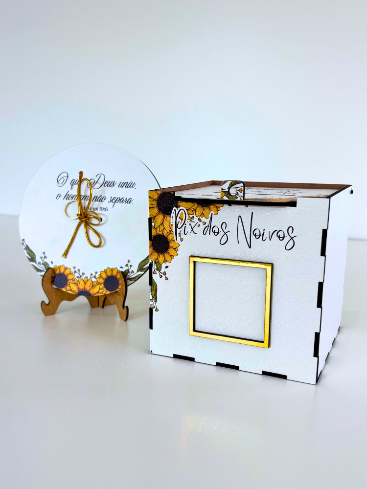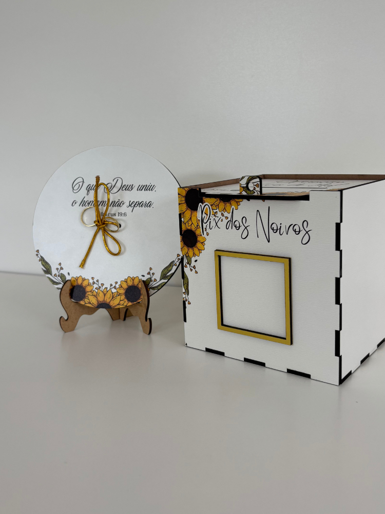 Caixa Pix Operação Lua de Mel + Porta Aliança Girassol Kit Casamento Corte da Gravata Qrcode