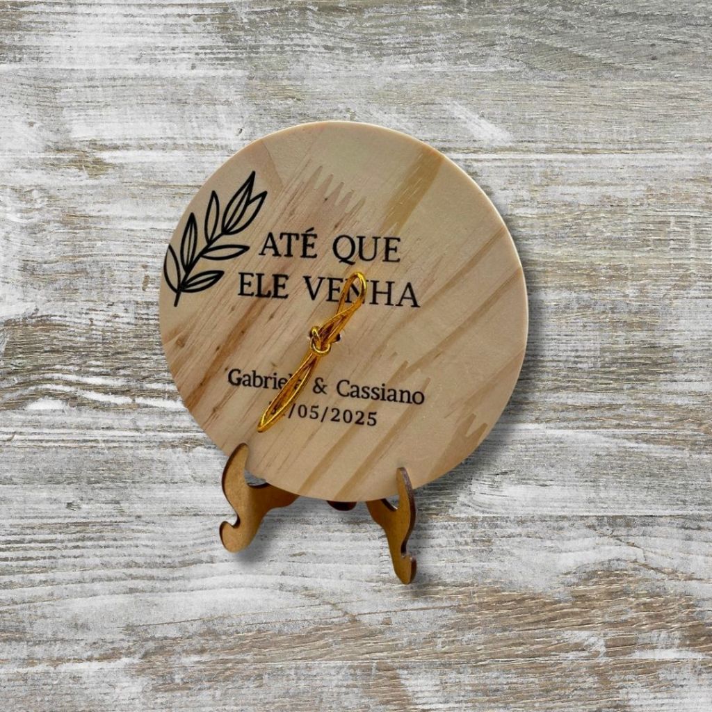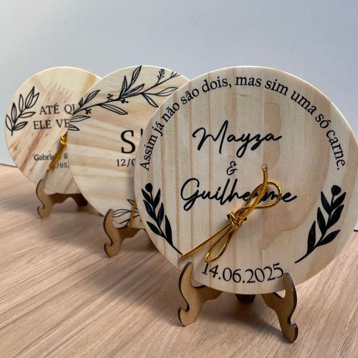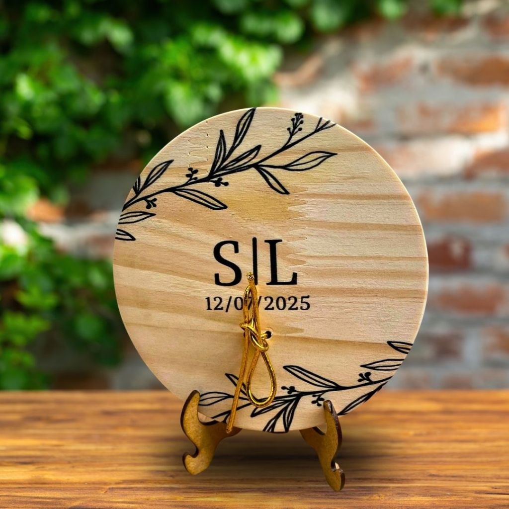 PORTA ALIANÇA DE MADEIRA COM SUPORTE PERSONALIZADO