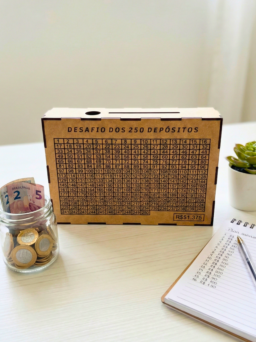 Caixa Cofre Mdf Desafio 5 Mil/ 10 MIL/ 250 depoisto 31 mil depositos Poupança Cofrinho Woodbox