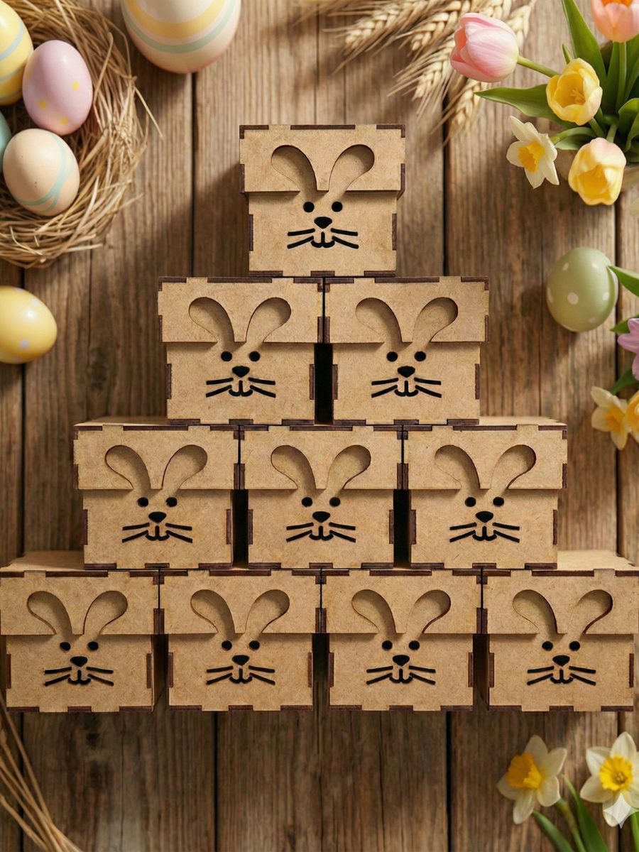 Caixa Mdf Cru 10x10x7 Feliz Páscoa Tampa Sapato Corte A Laser