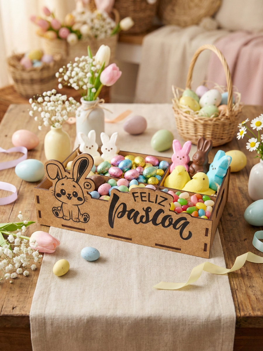 Kit Lembrancinha Páscoa Mdf Cesta Caixa Para Chocolate Escola Atacado