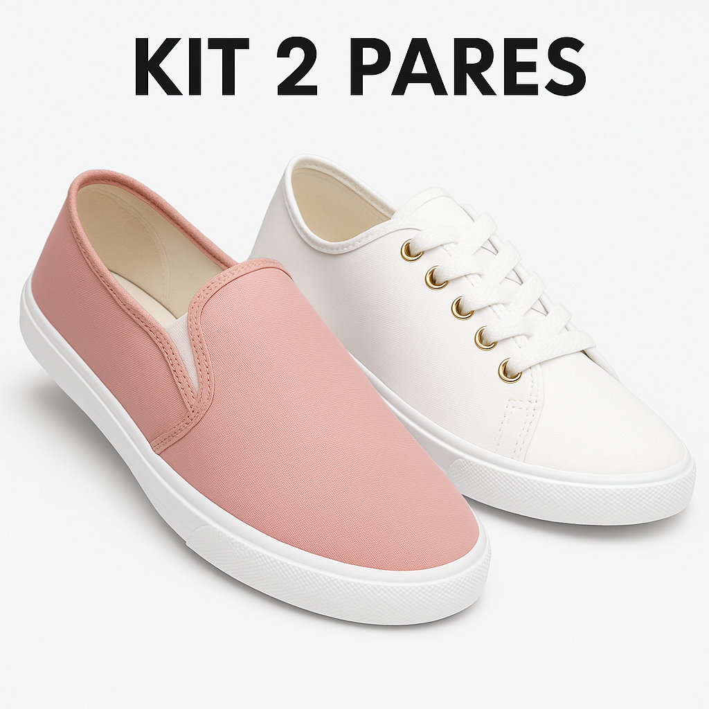 Kit 2 Tênis Casual Feminino Confortável e Leve Sapatenis Slip On Calce Fácil 34 ao 39 ENVIO IMEDIATO