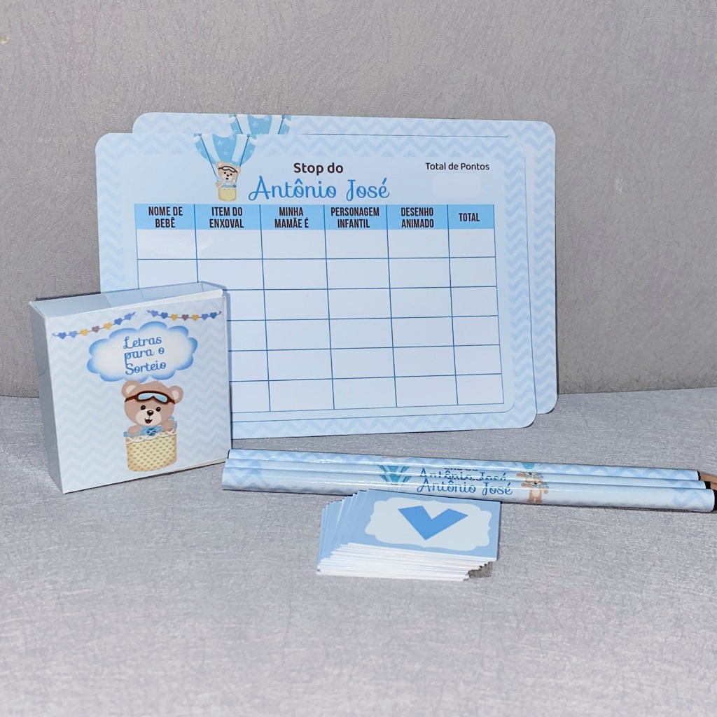 Stop Personalizado com lápis para Chá de Bebê ou Chá Revelação