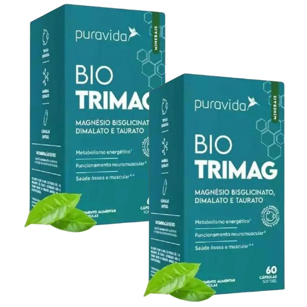Kit com 2 Bio TriMag (Magnésio Bisglicinato,Dimalato,Taurato) 60 Cápsulas - Puravida