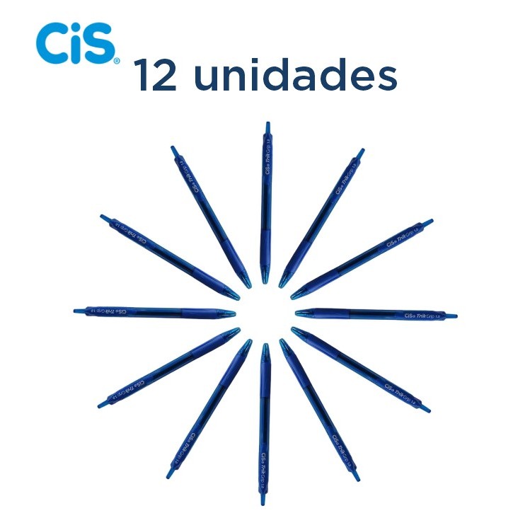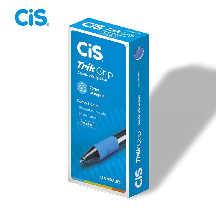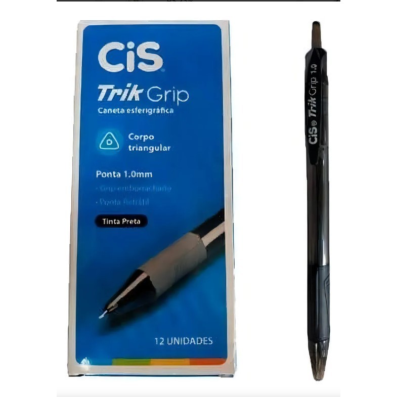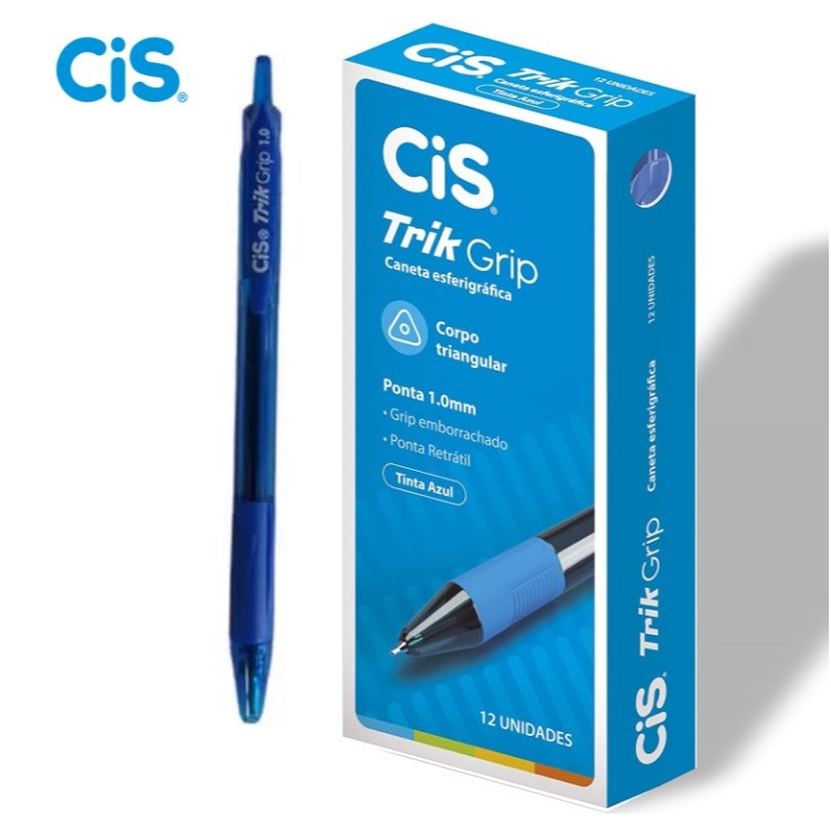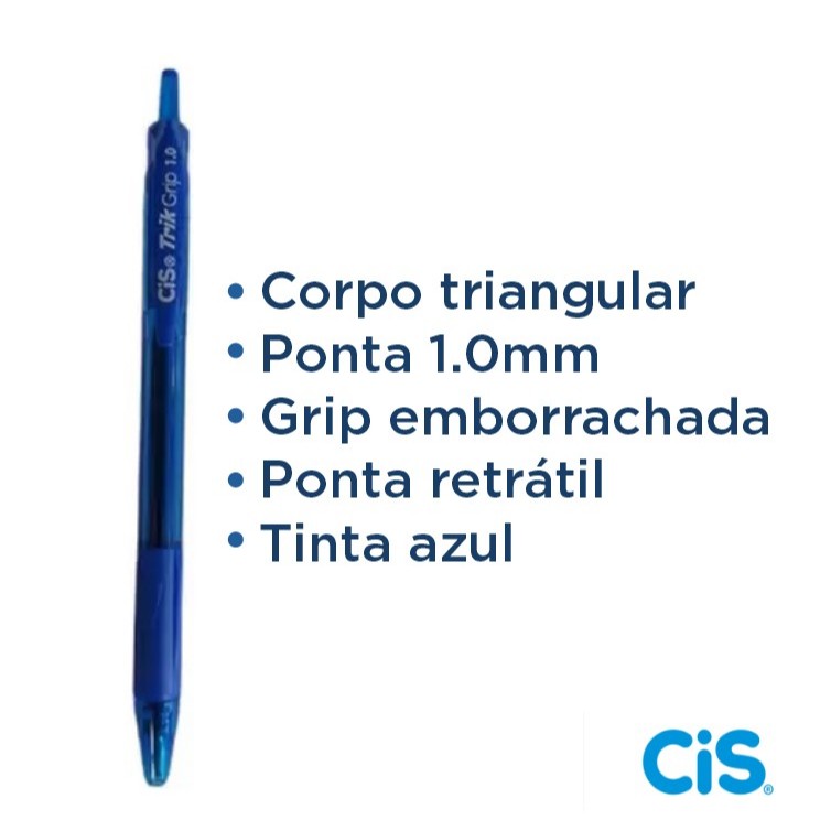 12 Unidades Caneta Esterografica Trik Grip Azul Ponta 1.0mm Emborrachada Ponta Retratil